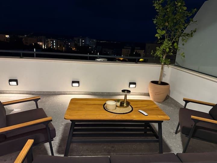 Posredujemo u dugoročnom najmu lijepog modernog i kompletno novog dvosobnog stana smještenog u novogradnji na Žnjanu. Dakle, radi se o prvom useljenju, stan ima veliku terasu od 90m2 sa jacuzzijem. 53m2 je unutarnjeg prostora gdje se nalaze dvije spavaće sobe, kupatilo, hodnik, kuhinja s blagovaonom i dnevnim boravkom iz kojeg se izlazi na predivnu veliku terasu s pogledom na more. Svaka soba ima klima uređaj i televiziju, jednako kao i dnevni boravak. Stan ima i podno grijanje te osigurano garažno parkirno mjesto. Dostupan je za useljenje 01.07.2025.na cijelu godinu... Mjesečna najamnina iznosi 1500€.