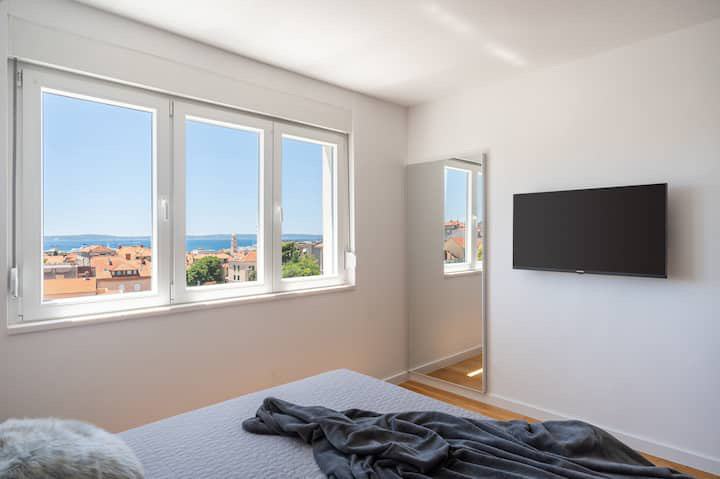 We mediate in the long-term rental of a beautiful two-room apartment located in the very center of the city, on Manuš. It is only a 10-minute walk to the old town center and the Riva. The apartment is located on the second floor of a residential building, has 70m2, is full of light and has a beautiful view of the city and the sea! It consists of two bedrooms, a bathroom and an additional toilet, a fully equipped luxury kitchen, a dining room and a living room that opens onto a balcony with a view of the sea and the city. The apartment is available for rent from October 1, 2025, and is also rented for a longer period of time! The monthly rent is €1,400. All necessary additional information on KONTAKT mob 0915616295 (ANDREA).