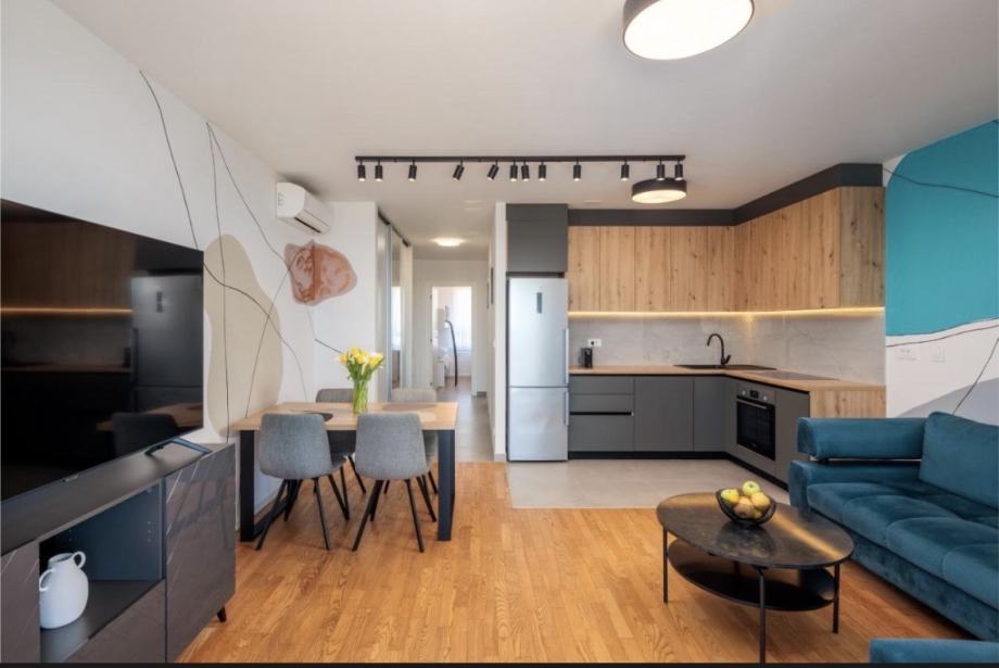 We are mediating in rental of a beautiful two-bedroom and completely new apartment located in a new building in the Pazdigrad area... it is located on the 4th floor of a new building with an elevator and has its own two parking spaces in the garage. The apartment is 60m2 and consists of two bedrooms, a kitchen with a dining area, a living room, a balcony, a bathroom and an additional toilet. The apartment is modernly decorated and is equipped with all quality brand appliances and devices. In the immediate vicinity there are all necessary facilities, schools, shops, a pharmacy, etc. It is available for rental from 15th September untill 15th June for price 800€, and it is posible to rent it for long term (whole year) at a price of € 1100 per month. CONTACT: 0915616295 (ANDREA)