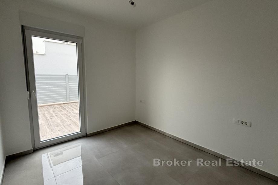 Stan se nalazi na visokom prizemlju moderne stambene zgrade, orijentiran je na jugozapad, a njegova najveća prednost je impresivna terasa koja pripada stanu i nudi nesmetan užitak u pogledu na more. Stambena površina od 55,20 m² pažljivo je osmišljena kako bi osigurala maksimalnu udobnost i funkcionalnost. Stan se sastoji od hodnika, dvije spavaće sobe, dvije kupaonice te otvorenog dnevnog dijela, skladno povezanog s kuhinjom iz kojega se izlazi na natkrivenu terasu površine 19,20 m² i popločani vrt, koji pružaju savršeno mjesto za opuštanje i nude obilje prostora za kreiranje sadržaja i opremanje prema vlastitim željama.