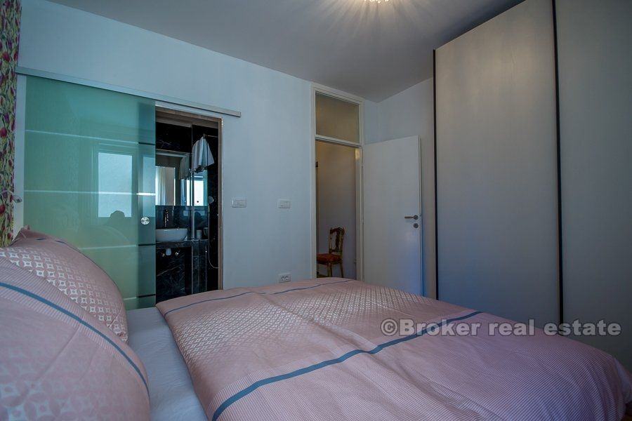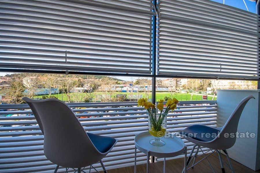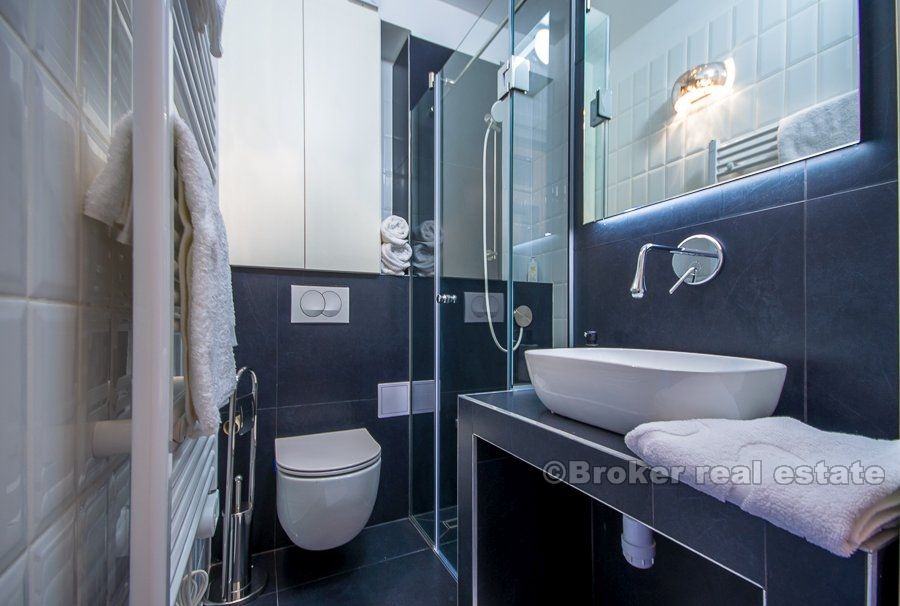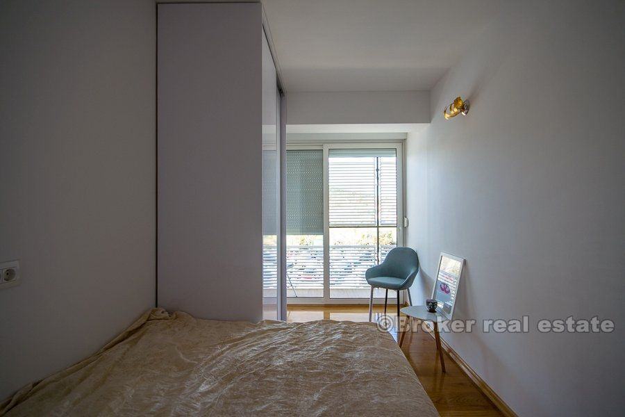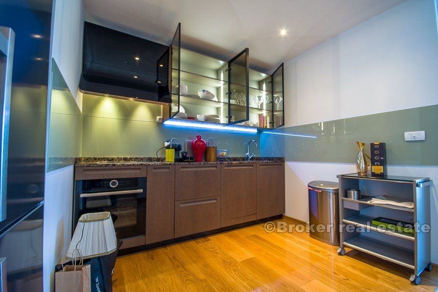 Moderan i dizajnerski opremljen stan za isključivo duži najam. Stan je položen na drugom katu, manje zgrade bez lifta i ima orijentaciju istok-zapad. Nalazi se u blizini Kazališta i centra grada. Sastoji se od dvije spavaće sobe (od kojih je jedna s vlastitom kupaonicom, a druga ima izlaz na lođu), hodnika s ugradbenim ormarom, još jedne kupaonice, kuhinje s blagovaonicom, dnevnog boravka i lođe od 5 m2. Stan je kompletno namješten, a u opremanju su korišteni samo vrhunski aparati i materijali. Prekrasan stan, uređen s ukusom, s puno dnevnog svjetla i idealan za življenje. Pripada mu jedno parkirno mjesto ispred zgrade. * S obzirom na promjenjivost i dinamiku iznjamljivanja, oglas je informativnog karaktera te ne mora nuzno znaciti da je ovaj stan dostupan za najam. Za aktualne informacije Vas molimo da nas kontaktirate.