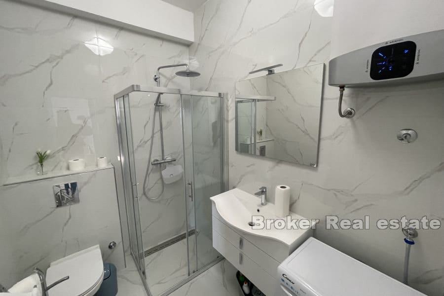 Moderan dvosobni stan na drugom katu stambene zgrade u Stobreču, u neposrednoj blizini plaže i mora.