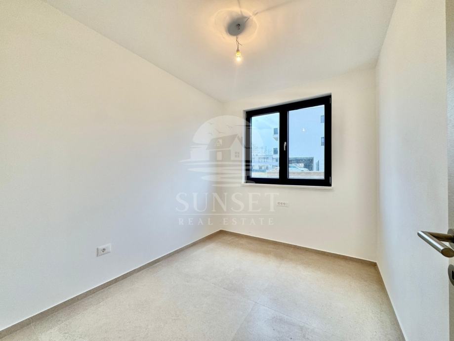 Raspored prostora obuhvaća prostrani dnevni boravak i kuhinju, dvije spavaće sobe, kupaonicu, wc, veliku terasu površine 28 m², ostavu u podrumu te vrt površine 157 m², idealan za boravak na otvorenom.