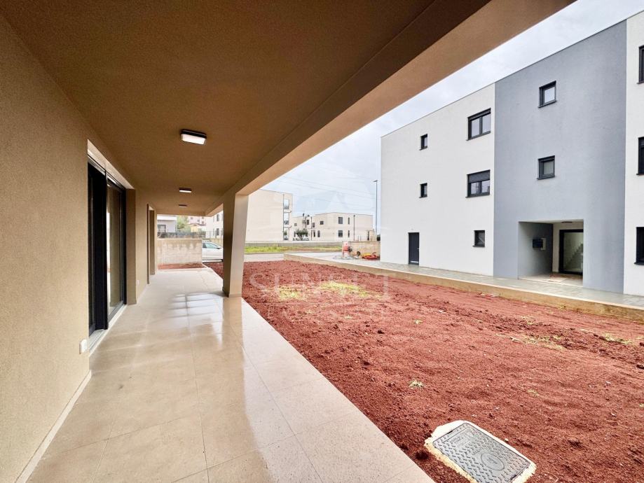 U ponudi je atraktivan moderan stan s vrtom, smješten u mirnom naselju u blizini Umaga. Stan ima neto korisnu površinu od 123 m² i nalazi se u stambenoj zgradi s ukupno šest stambenih jedinica.