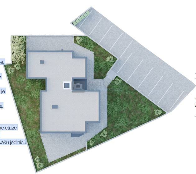 Parcela površine 653 m² smještena je na povišenoj poziciji na vrhu Crljine