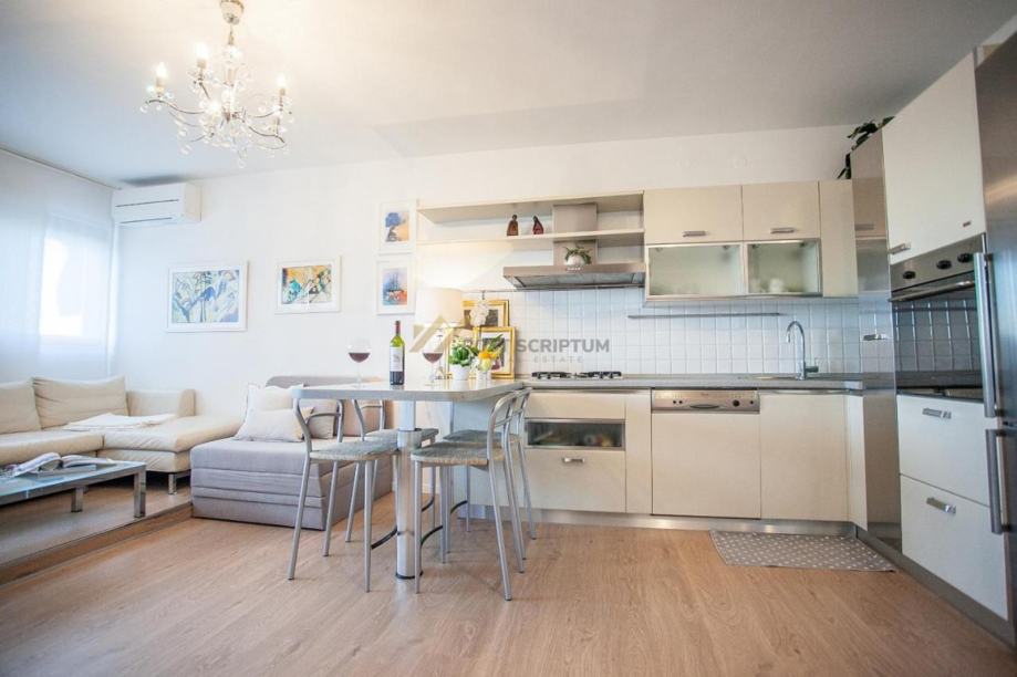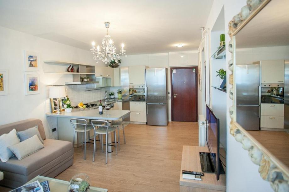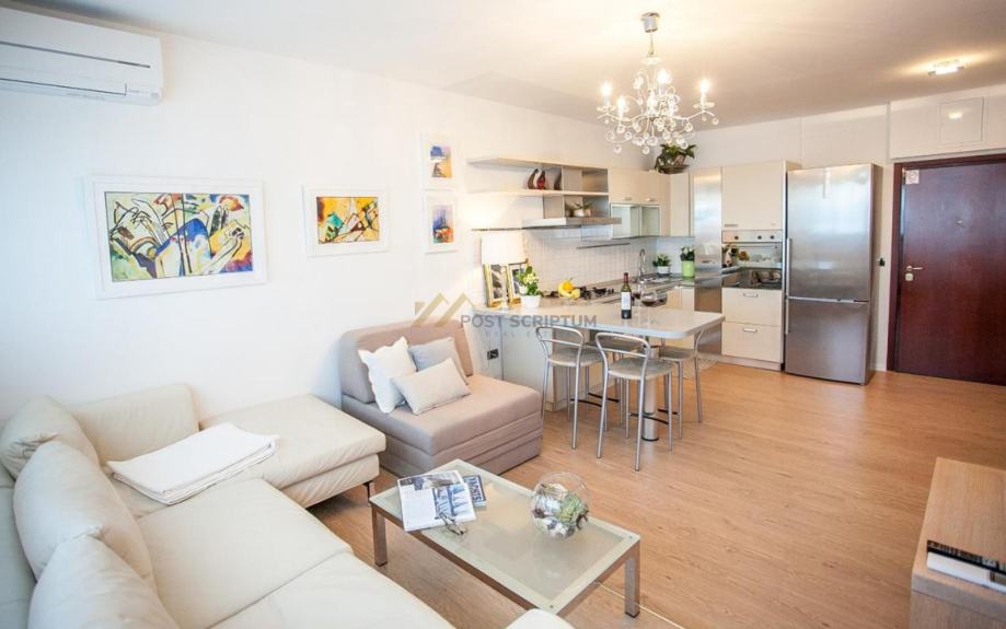 Ugodan, klimatiziran, uveden internet, opremljen namještajem i uređajima (TV, klima, perilica rublja, perilica posuđa).