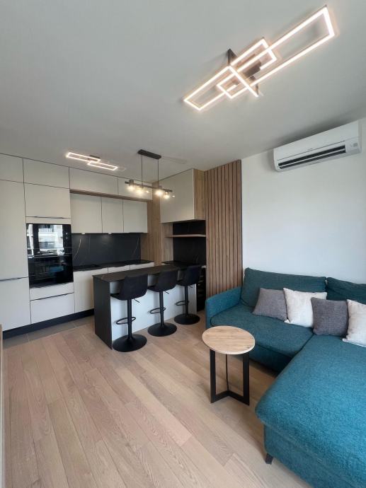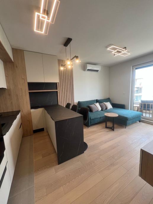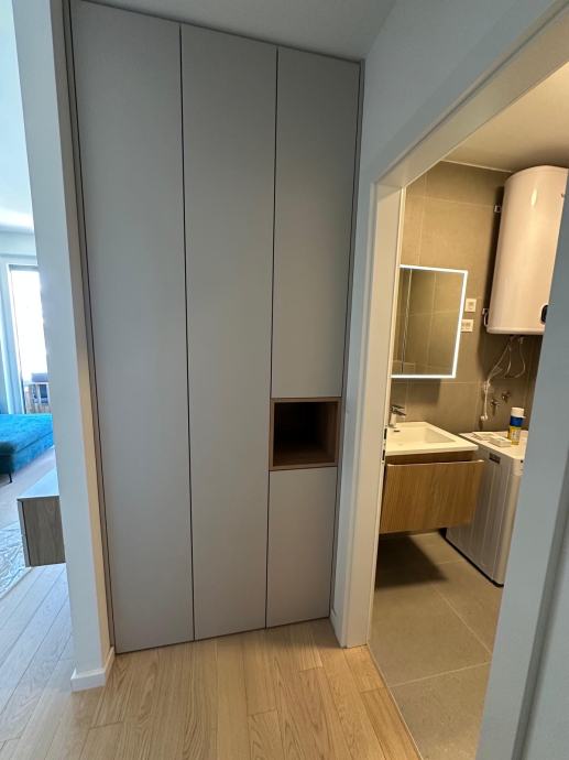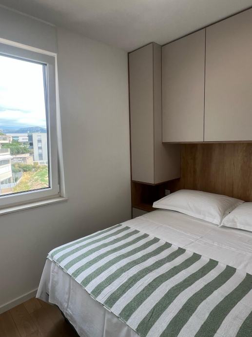 We are renting a completely new modern designer apartment located in a new building in Žnjan. It is located on the 6th floor, has 36m2, and consists of one bedroom, bathroom, kitchen with dining area and living room with access to a balcony. The apartment also has a 4m2 storage room located in the building. The apartment is fully equipped with everything you need for life, OLED TV, washer/dryer, premium appliances, designer furniture... this is a first-time move-in. Available and ready to move in 1.6.2026. The price is €900 per month. Possibility of renting a garage and a parking space in the garage. CONTACT: 0915616295 (ANDREA)
