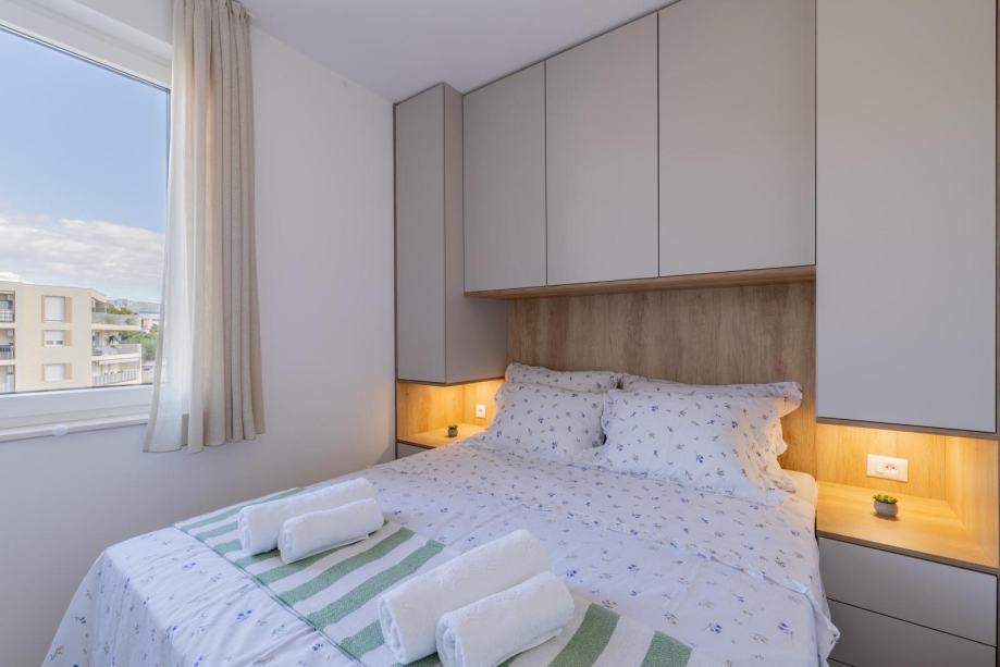 We are renting a completely new modern designer apartment located in a new building in Žnjan. It is located on the 6th floor, has 36m2, and consists of one bedroom, bathroom, kitchen with dining area and living room with access to a balcony. The apartment also has a 4m2 storage room located in the building. The apartment is fully equipped with everything you need for life, OLED TV, washer/dryer, premium appliances, designer furniture... this is a first-time move-in. Available and ready to move in 1.5.2026. The price is €900 per month. Possibility of renting a garage and a parking space in the garage. CONTACT: 0915616295 (ANDREA)