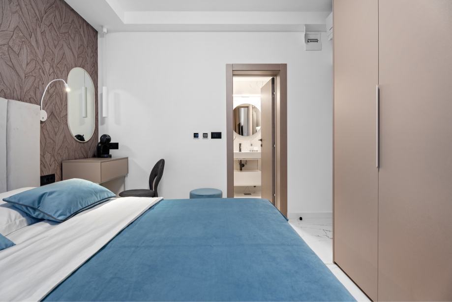 We are mediating in the long-term rental of a beautiful three-bedroom apartment located in one of the most elite parts of the city - in Meje. The apartment is located on the ground floor of a small building surrounded by greenery and beautiful landscaping. The apartment is 100m2 and consists of three comfortable bedrooms (each with its own bathroom, air conditioning and TV), hallway, kitchen with dining area and spacious living room with access to a beautiful terrace for outdoor enjoyment. The apartment also has underfloor heating. It is fully luxurious and modernly equipped with everything you need for a functional and comfortable life. Available for rent immediately, for the whole year and longer. The monthly rental price is €2500. More additional info on CONTACT: 0915616295 (ANDREA)