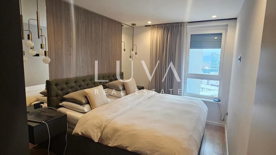 Prodaje se moderan, luksuzno uređen stan u novogradnji na Vrbanima. Stan je smješten na zadnjem, 16. katu s kojeg se pruža predivan pogled na Zagreb. Stan se sastoji od ulaznog hodnika, kuhinje, prostranog dnevnog boravka iz kojeg se izlazi na lođu, 2 spavaće sobe, kupaonice i dodatnog WC-a. Stan se prodaje kompletno uređen sa svim namještajem i aparatima. Većina namještaja je rađena po mjeri, a kupovni je luksuzni dizajnerski. Grijanje u stanu je podno putem dizalice topline, a ima i klimu. Stan ima 112 m2 bruto, a 103 m2 obračunski neto prema sljedećim izračunima: