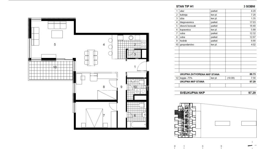 Lođa – 9,56 m2 – 7,17 m2 neto