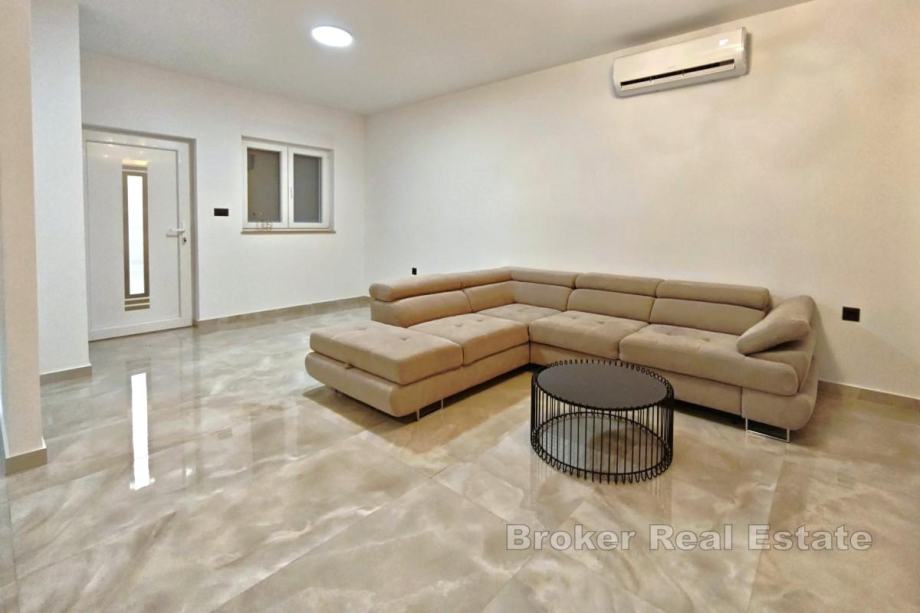 Nekretnina je u potpunosti renovirana 2024. godine, pri čemu su korišteni kvalitetni materijali, uključujući vrhunsku keramiku i modernu opremu. Stan je klimatiziran, ima komarnike i odličnu toplinsku izolaciju, što dodatno doprinosi udobnosti tijekom cijele godine. Sav namještaj je nov, moderan i napravljen po mjeri te se stan prodaje namješten, spreman za useljenje bez dodatnih ulaganja. U cijenu je uključeno vanjsko parkirno mjesto, koje nije obavezno.