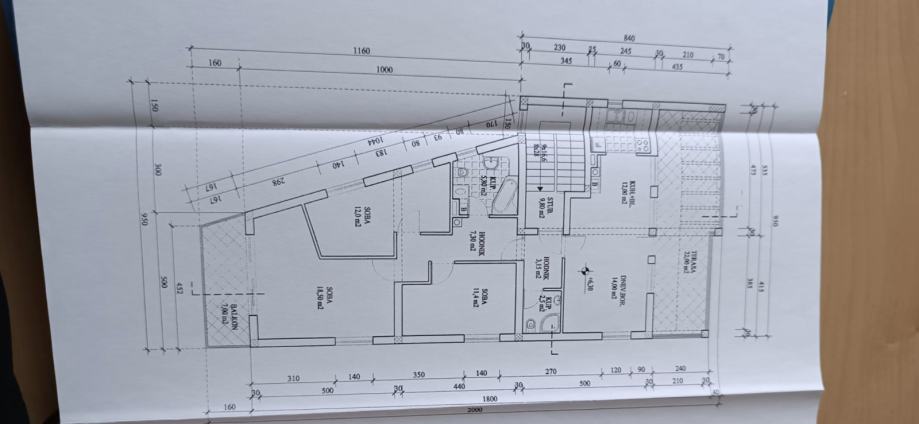 Ukupna stambena površina je 90m2, a sveukupno površina prema ZK izvatku je 134,24m2,