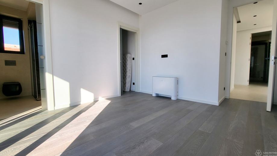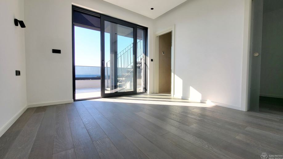 Penthouse ukupne stambene površine 121.66 m2 sastoji se od ulaznog prostora, prostranog dnevnog boravka s kuhinjom i blagovaonicom, tri spavaće sobe, tri kupaonice, prostorije za walk-in ormar, ostave te natkrivene i nenatkrivene terase. Penthouse se prodaje nenamješten. Posebna vrijednost ove nekretnine je krovna terasa površine 89,08 m2 sa sunčalištem. Dodatno, pripada joj spremište u podrumu 3,40 m2, te dva parkirna mjesta.