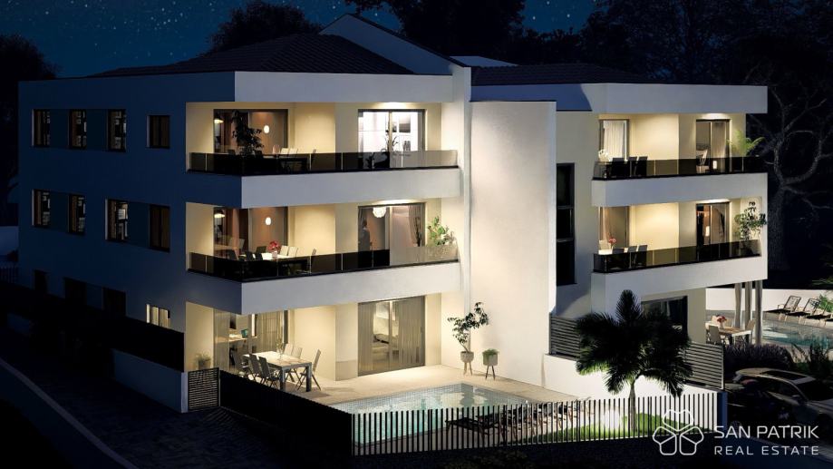 Svaka stambena jedinica pruža visoku razinu udobnosti i privatnosti. Posebno se izdvaja stan u prizemlju koji ima vlastiti bazen i okućnicu – idealno za boravak tijekom cijele godine ili luksuzni odmor. Svakom stanu pripadaju po dva parkirna mjesta, a cijeli projekt je osmišljen tako da pruži maksimalnu praktičnost i komfor.