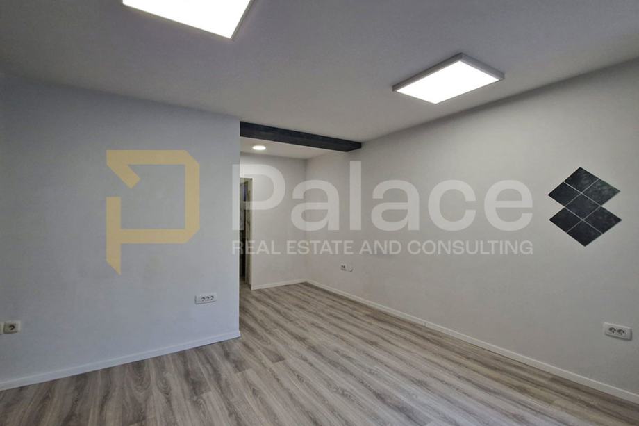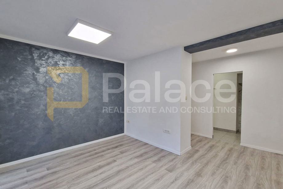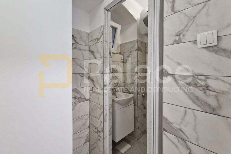 Prostor se sastoji od jedne glavne prostorije te sanitarnog čvora, a dodatnu praktičnost pruža mali izdvojeni kutak, savršen za čajnu kuhinju ili skladišni dio.