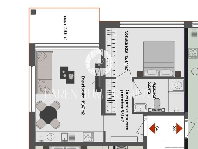 Ukupna neto površina: 47,48 m²