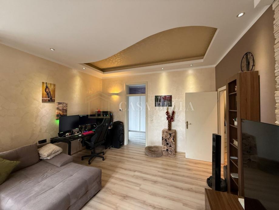 Casa Bella iz ponude izdvaja prostran i moderno uređen stan u centru grada, ukupne površine 108 m², smješten na 1. katu stambene zgrade. Ova nekretnina odiše elegancijom, funkcionalnošću i obiljem prirodnog svjetla.