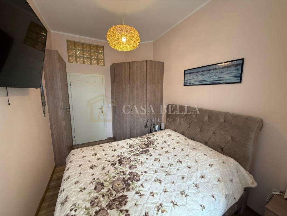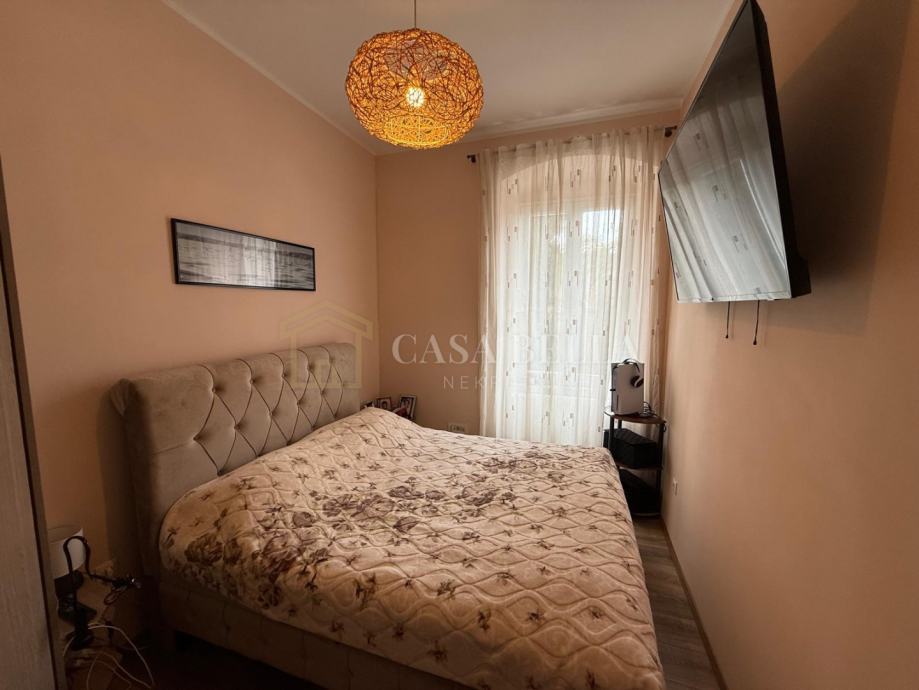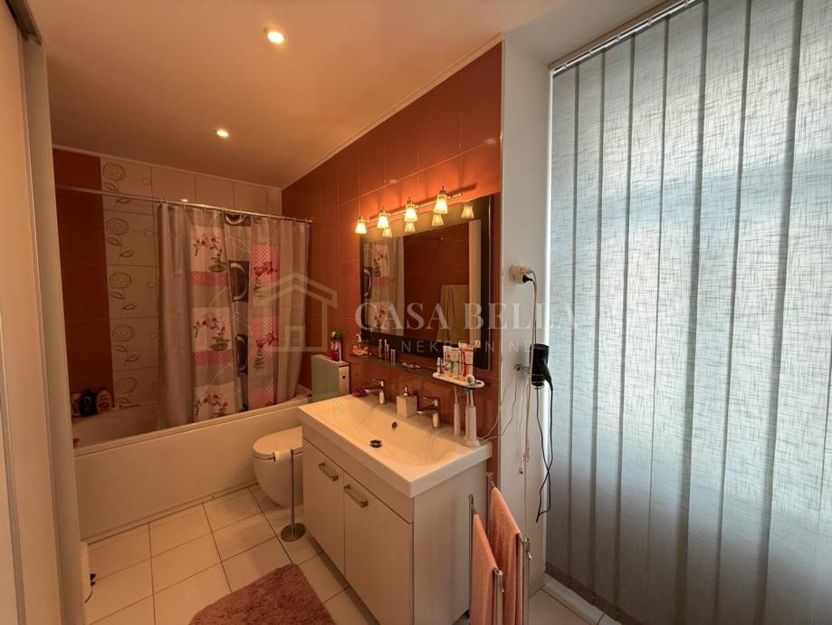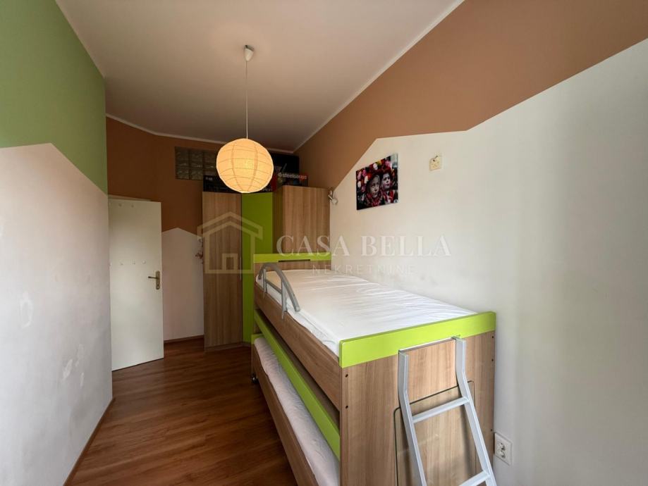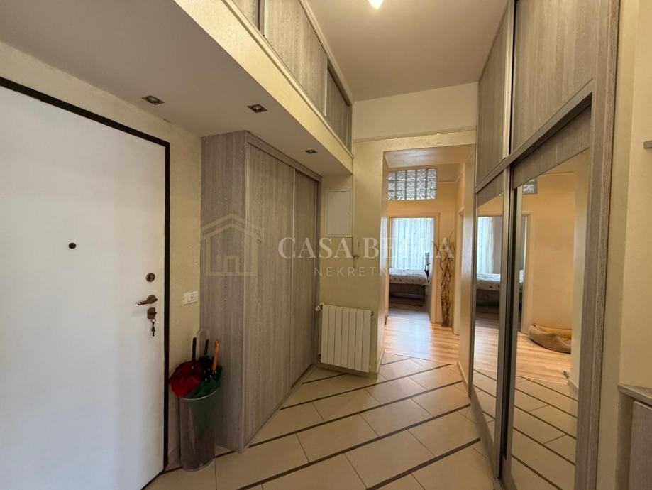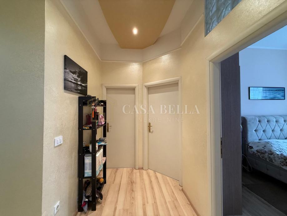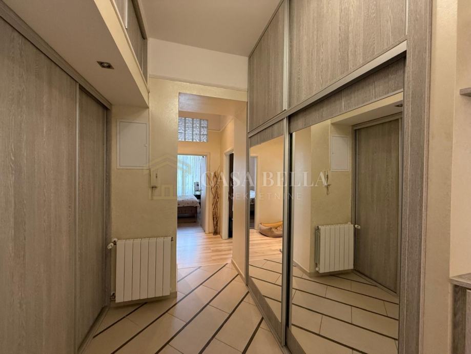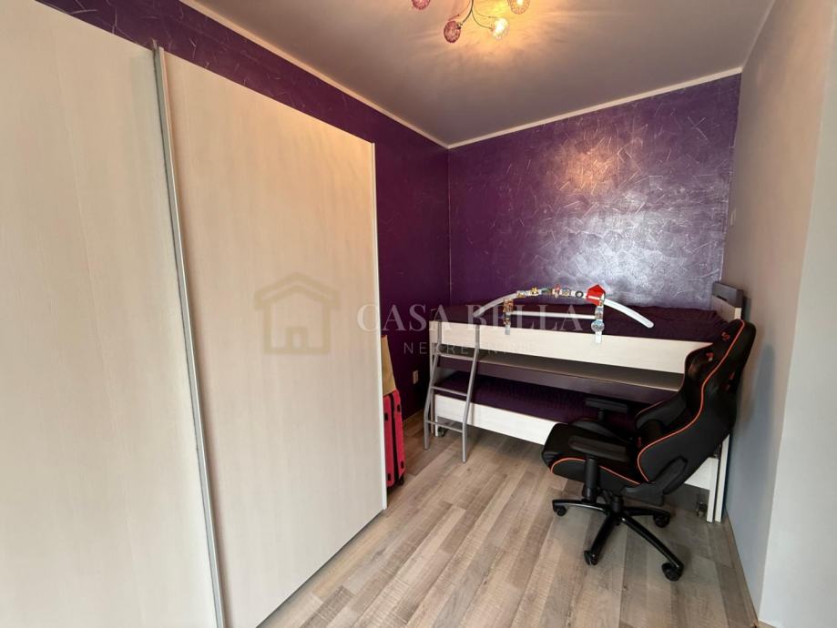 Stan se sastoji od tri spavaće sobe, prostranog dnevnog boravka, kuhinje, blagovaonice, kupaonice, zasebnog WC-a te balkona. Interijer je suvremeno uređen, s naglaskom na udobnost i kvalitetu stanovanja. Kuhinja je u potpunosti opremljena, a stan se prodaje potpuno namješten, osim osobnih stvari.