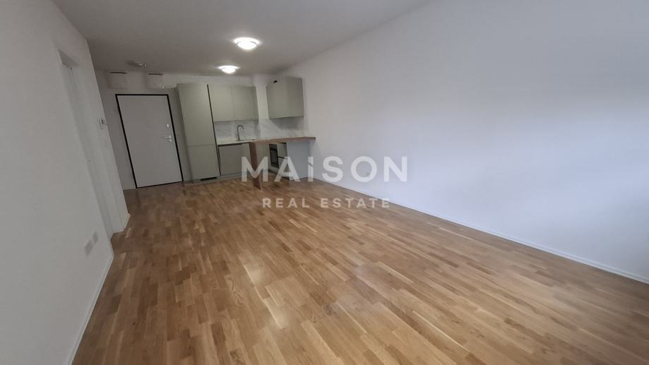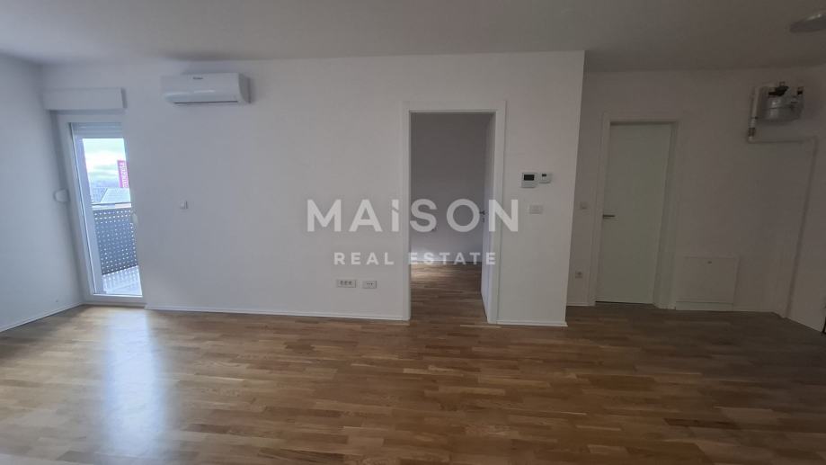 Stan je izuzetno svijetao i funkcionalno raspoređen, a sastoji se od dnevnog boravka s blagovaonicom, kuhinje, spavaće sobe, kupaonice, balkona te pripadajućeg spremišta unutar zgrade. Iznajmljuje se nenamješten, uz novu kuhinju izrađenu po mjeri, koja je elegantno odvojena šankom od prostranog dnevnog boravka.