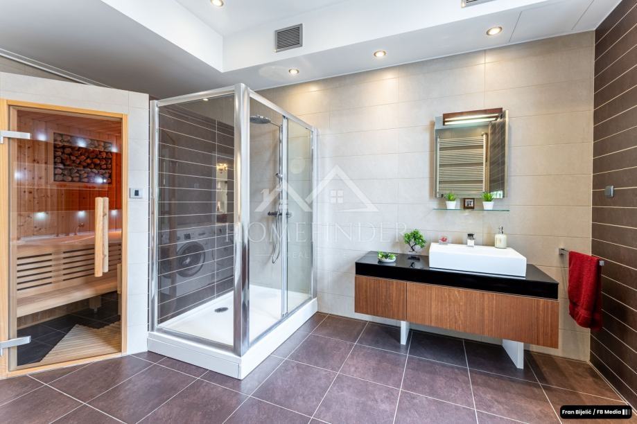 Za ugodnu klimu u stanu brinu se klimatizacijski sustavi i podno grijanje u kupaonici, dok se etažno grijanje temelji na učinkovitom Viessmann plinskom bojleru. Kupaonska oprema je vrhunske kvalitete, marke Villeroy & Boch, a stan je dodatno opremljen perilicom i sušilicom rublja marke Bosch. U dnevnom boravku se nalazi Samsung Smart 4K TV sa Sony audio sustavom, čime se dodatno zaokružuje luksuzan i funkcionalan ambijent.