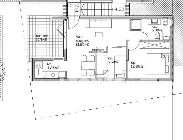 Ovaj kvalitetan stan sastoji se od open space dnevnog boravka s kuhinjom i blagovaonicom , dvije spavaće sobe te kupatila.