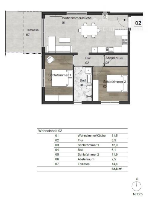 Stan „02“ nalazi u prizemlju zgrade i ima neto površinu 75,6 m².