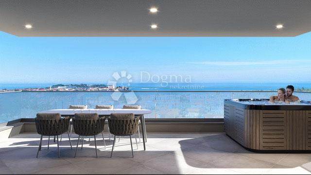 Na prvom katu stana nalazi se jedna spavaća soba, kupaonica, garderoba površine 6,63 m2 i WC/praonica. Ova etaža pruža dodatni privatni prostor za opuštanje i spavanje. Također na prvom katu, stanu pripada i parkirno mjesto i spremište u podrumu, što je praktično za odlaganje različitih predmeta i organizaciju prostora. Dodatna pogodnost ovog stana je krovna terasa koja se nalazi na vrhu zgrade i ima mogućnost ugradnje jacuzzija. Ova terasa pruža privatno mjesto za opuštanje, sunčanje i uživanje u prekrasnom pogledu.