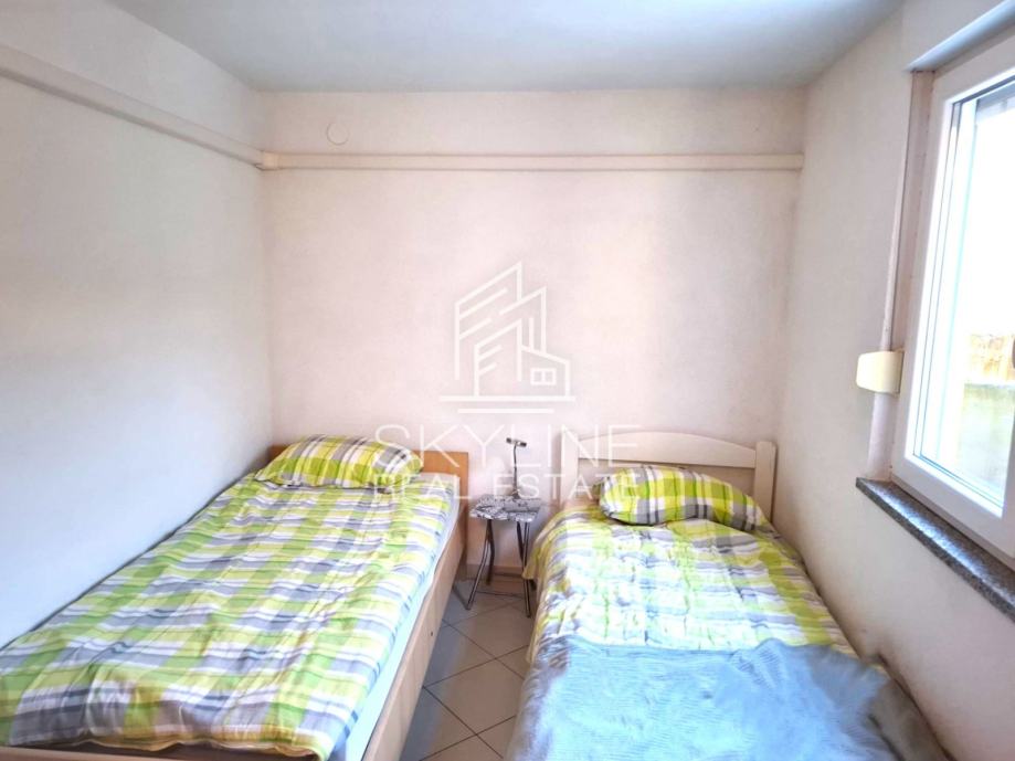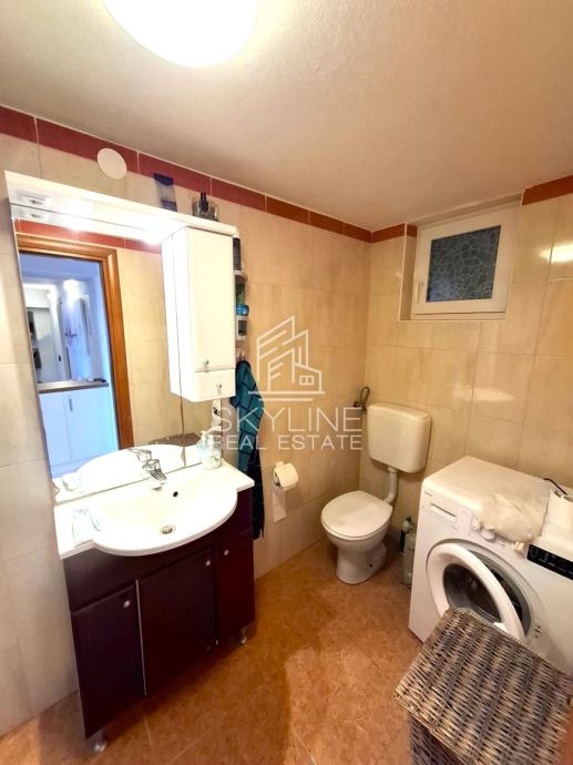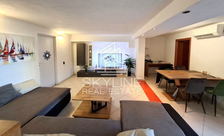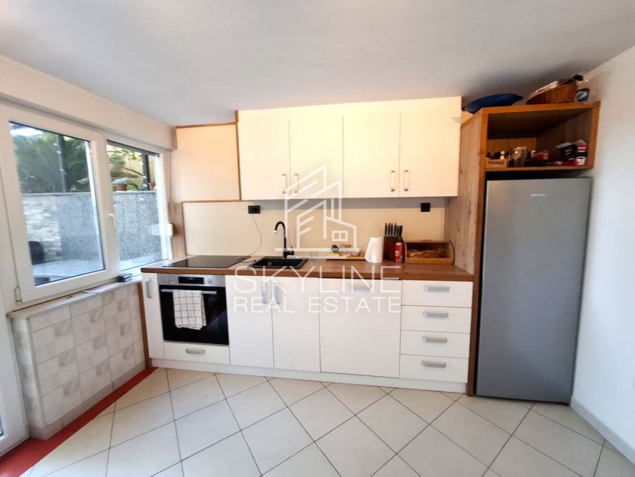 Stan se nalazi u suterenu, no prostor je kompletno renoviran te odiše ugodom prizemnog stana. S dnevnim boravkom povezana je natkrivena terasa koja predstavlja poseban ugođaj – potpuno privatna, opremljena roštiljem i savršeno orijentirana za uživanje u toplim ljetnim danima i večerima. Ovo je mjesto koje poziva na opuštanje i druženja na otvorenom u vlastitu miru.