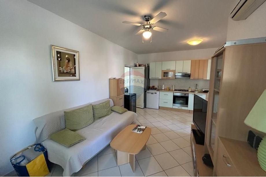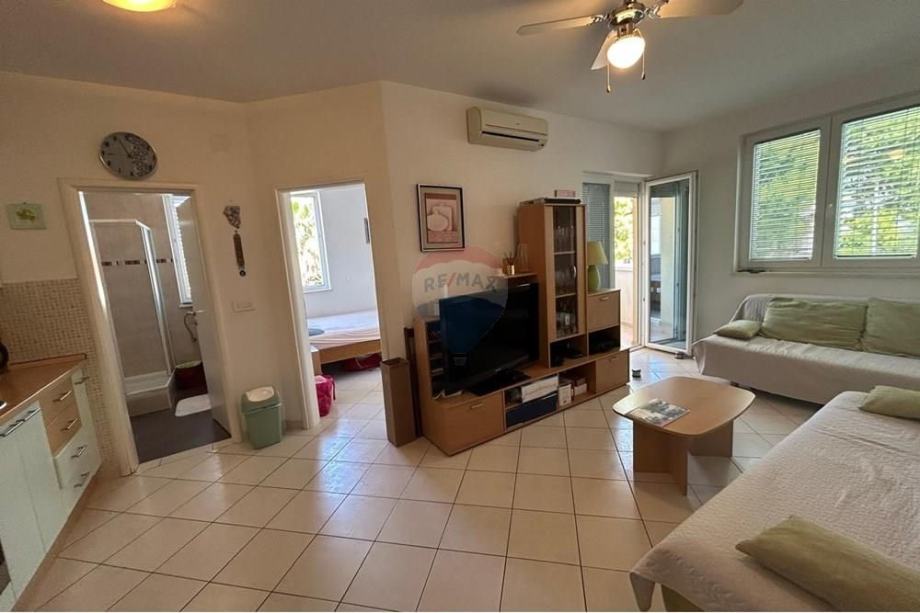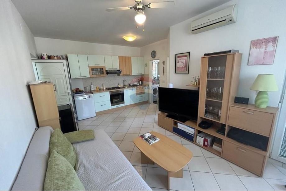 Stan sadrži, jednu spavaću sobu, kupaonicu, kuhinju/dnevni boravak i terasu. Osim toga, stan je potpuno namješten, uređen u mediteranskom i modernom stilu, osiguravajući ugodan i estetski privlačan ambijent. Kuhinja s blagovaonicom je idealna za druženja i obiteljske obroke.