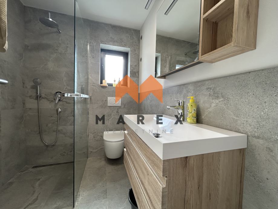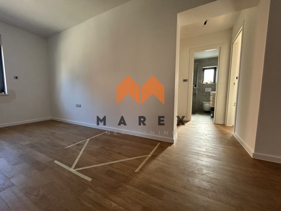 Interijer je uređen u skladu sa suvremenim standardima stanovanja. Kupaonica je potpuno opremljena i sadrži walk-in tuš i kvalitetnu sanitarnu opremu. Kuhinja nije namještena, što budućim vlasnicima omogućuje da je urede prema vlastitim željama i stilu.