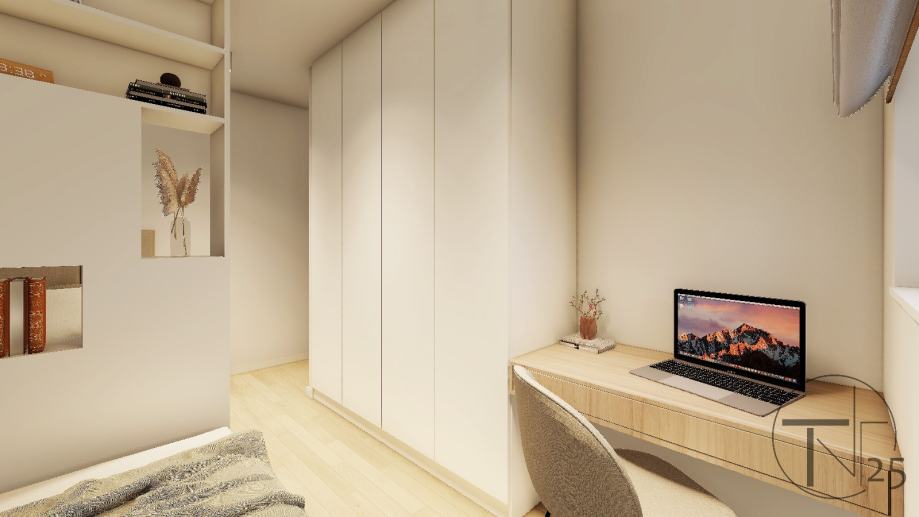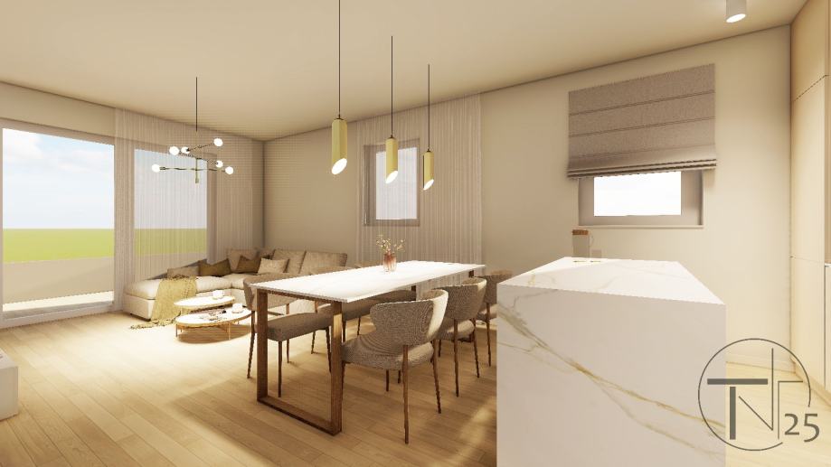 Stan će biti opremljen kvalitetnim materijalima, a imat će i direktan pristup modernoj podzemnoj garaži koja je liftom povezana sa svakom etažom. Projektant zgrade je osmislio objekt koji će zadovoljiti viši standard stanovanja, udobnost i estetske vrijednosti.