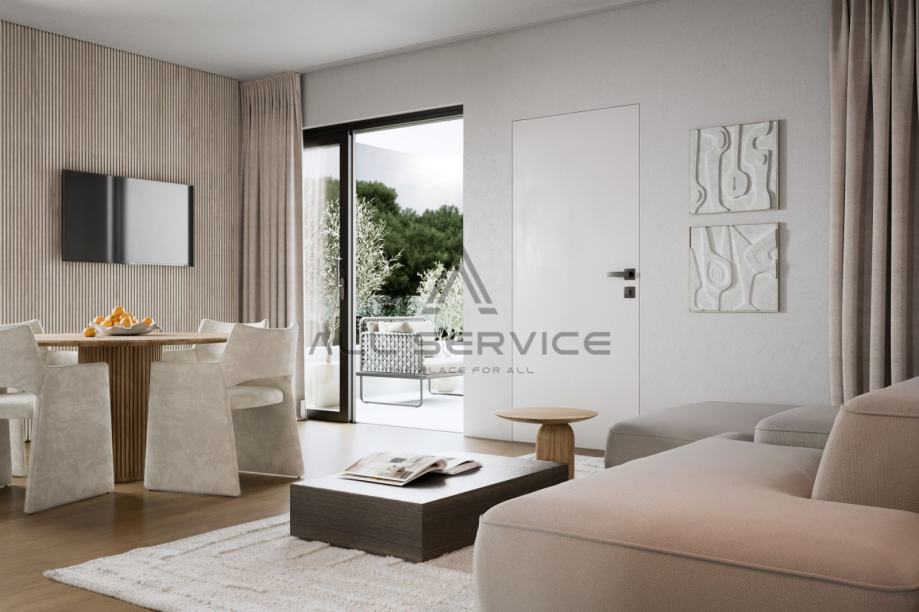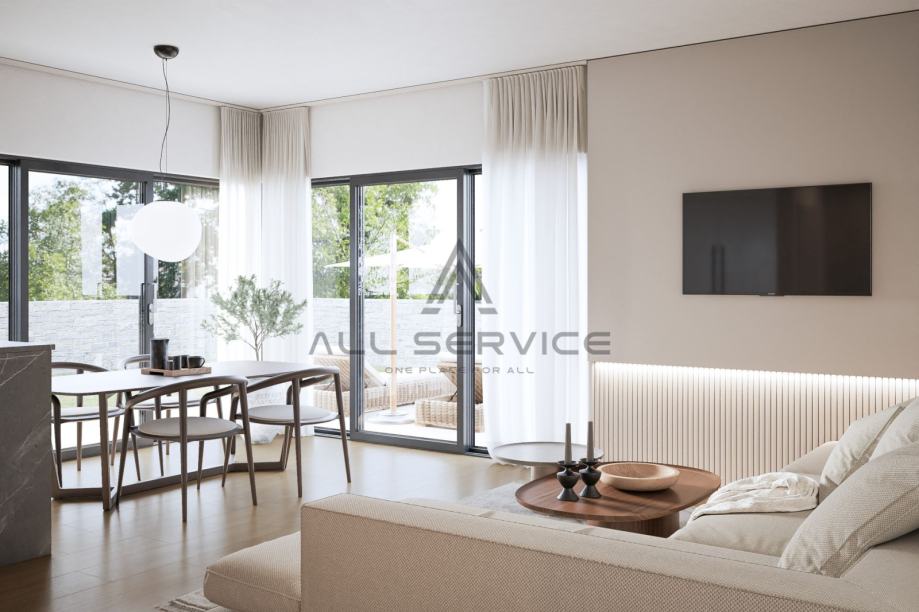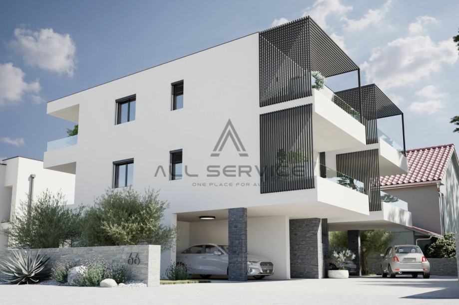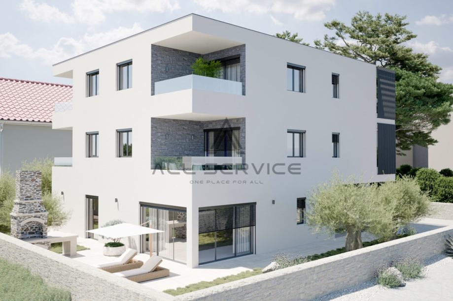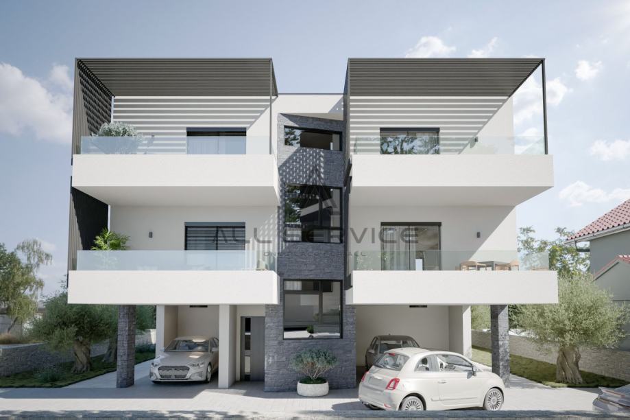 A modern apartment in a new development is for sale, situated in Biograd na Moru, at an attractive location just 500 meters from the main city beach. The apartment, with a total area of 105.93 m², is located on the ground floor of the building.