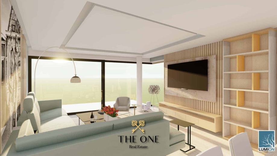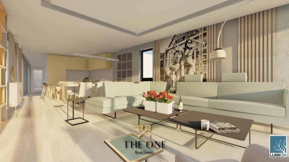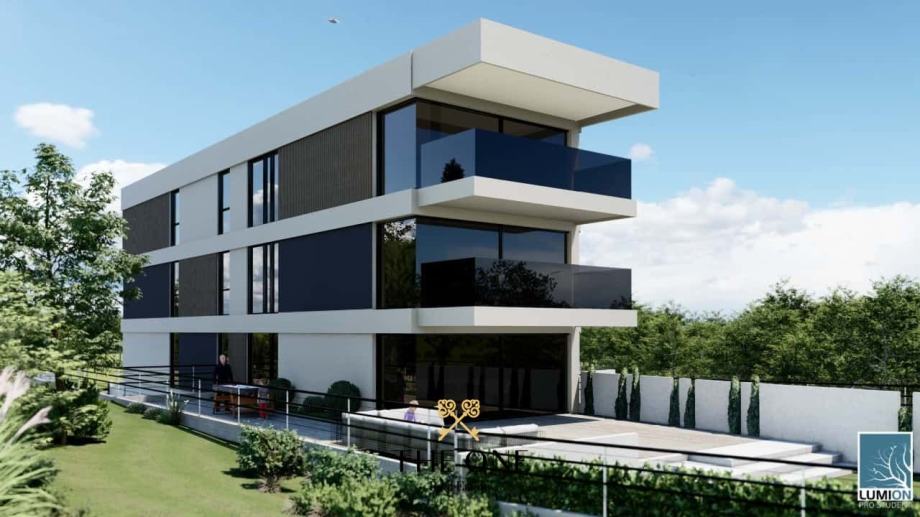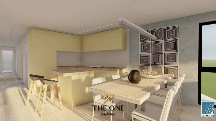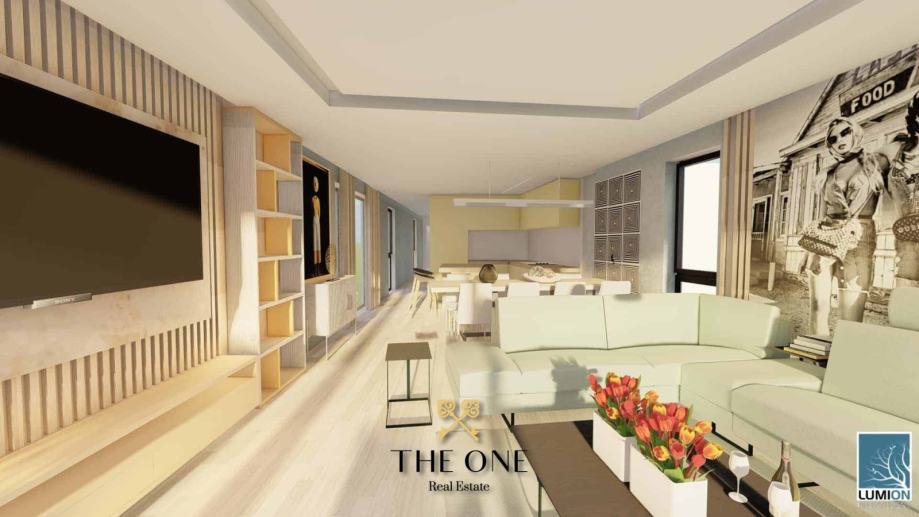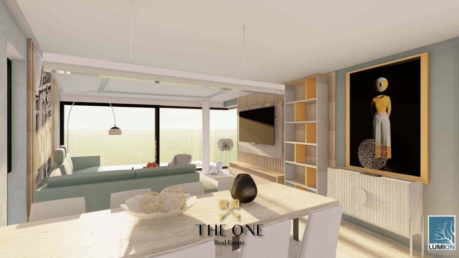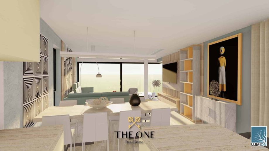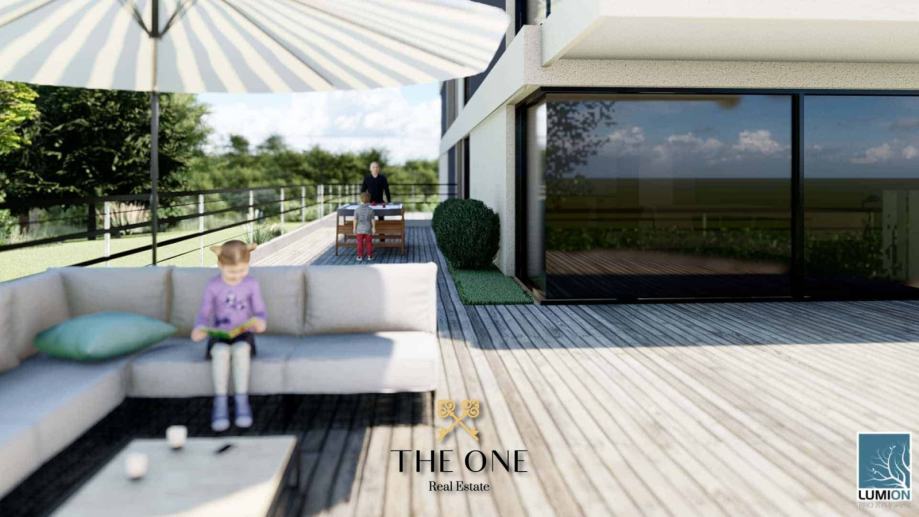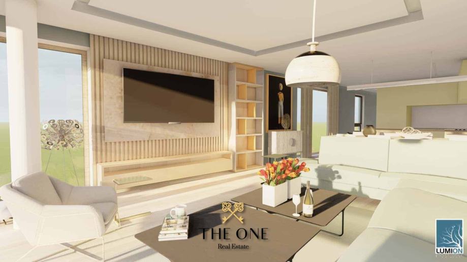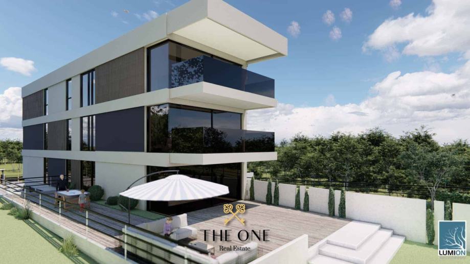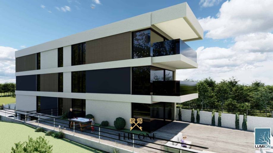 Zgrada ima ukupno tri stana i svaki se sastoji od 3 spavaće sobe, 2 kupaonice, ostave, open space koncept kuhinje s blagovaonicom, dnevnog boravka i natkrivene prostrane terase.