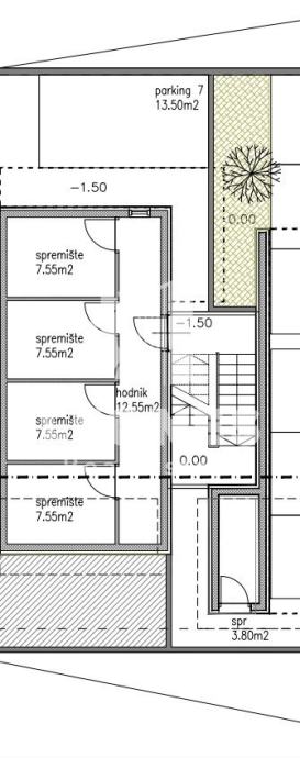 Stan raspolaže spremištem od 7,55m2 u prizemlju zgrade.