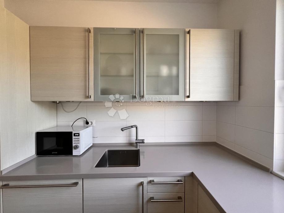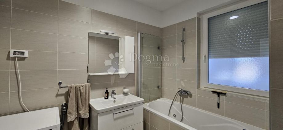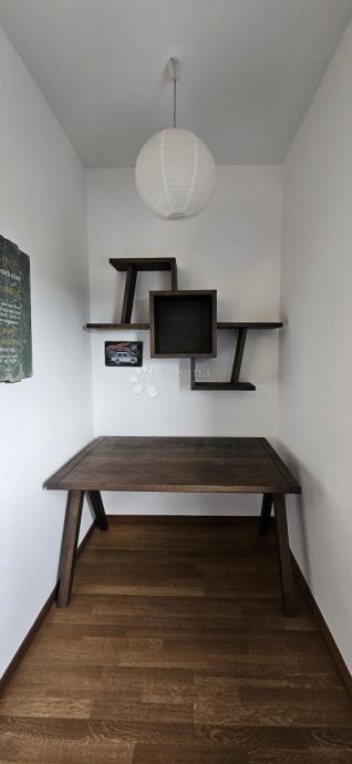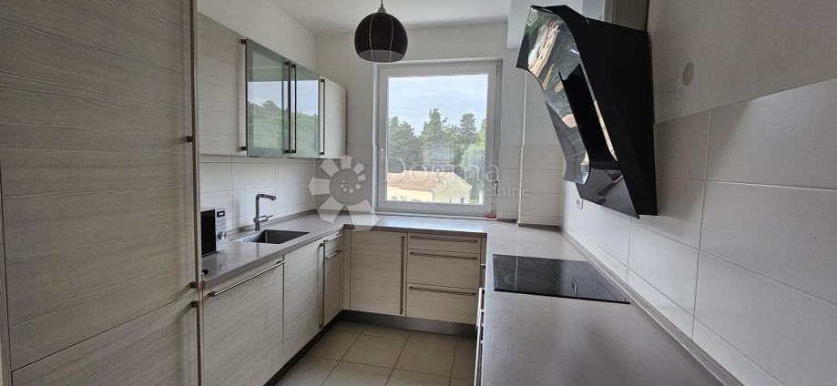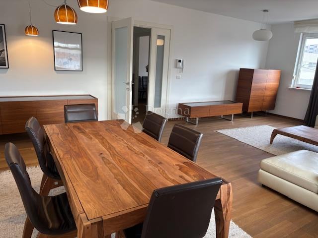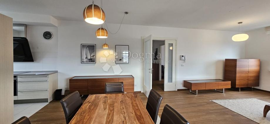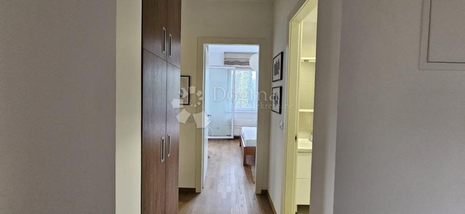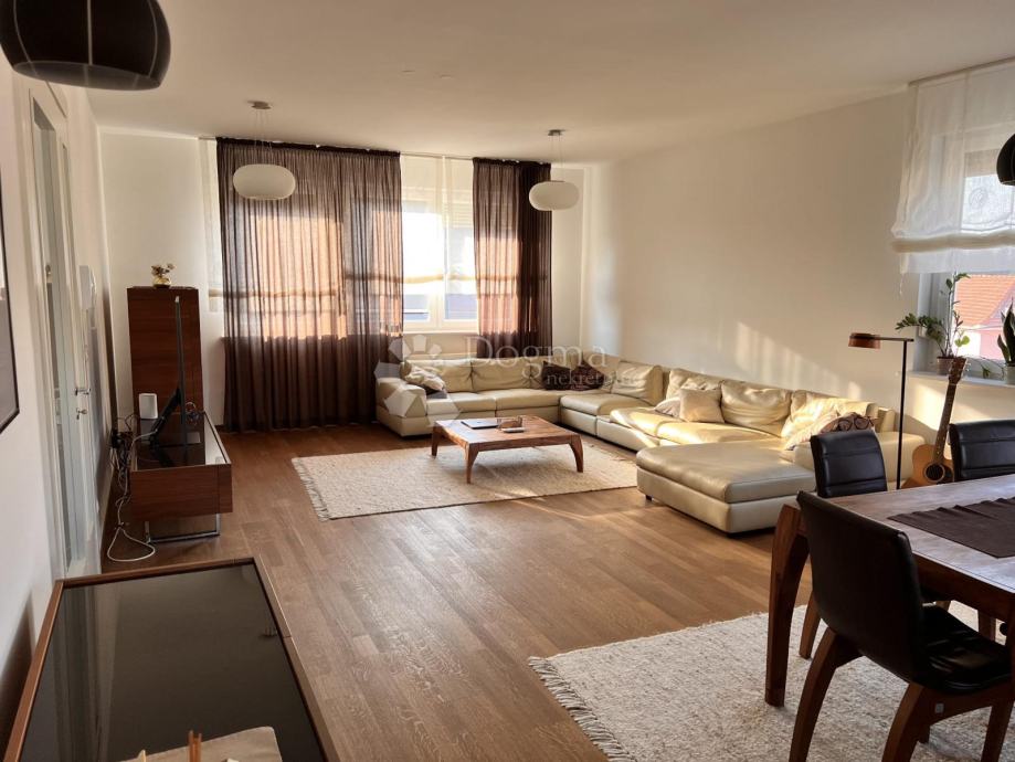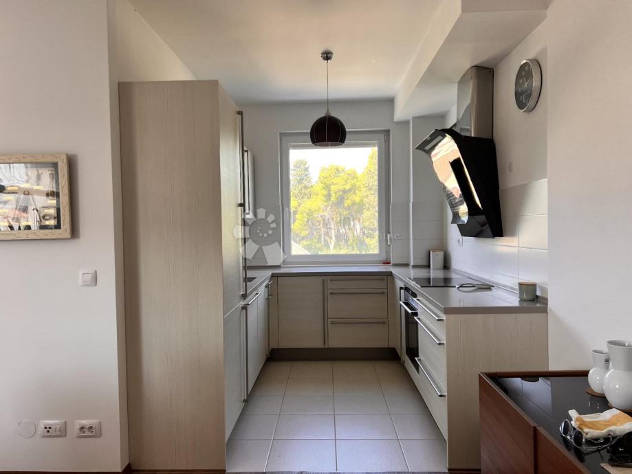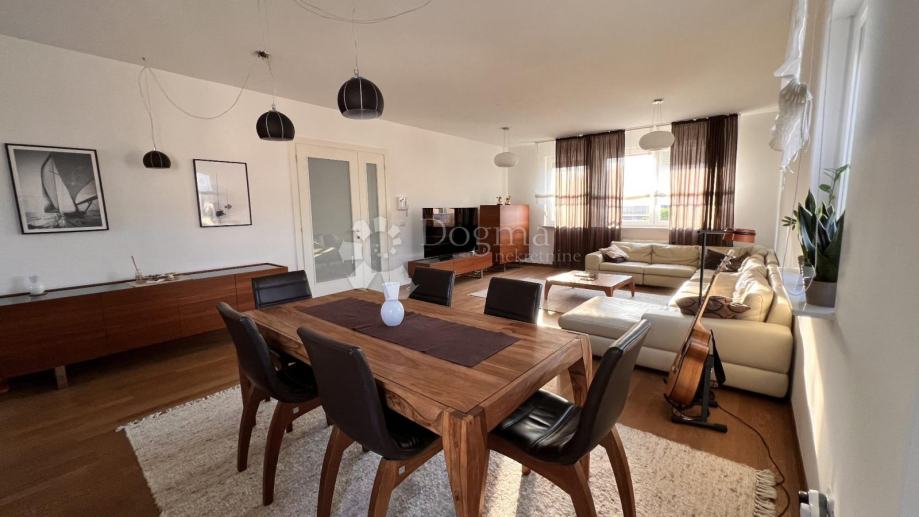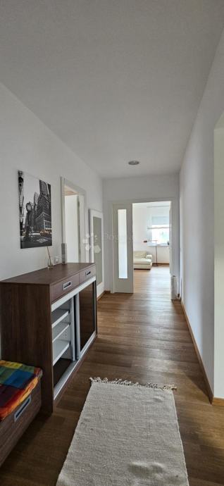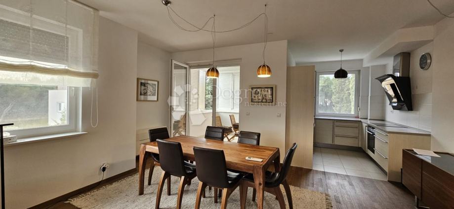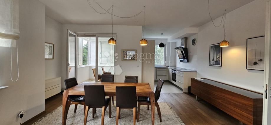 Stan ima predivan pogled na zelenilo i nalazi se u mirnoj ulici. Centar grada udaljen je samo 10ak minuta pješice. Stan se prodaje opremljen vrhunskim namještajem kao što je kuhinja Haecker s kutnim izvlačnim djelovima, opremljena Siemens uređajima, napa Elica, komode Calligaris, blagavaonski stol i stolice Miotto, kutna kožna garnitura Prostorija, kauči na razvlačenje u sobama Prostorija, kreveti Wollbett, radni stol i polica Era namještaj.