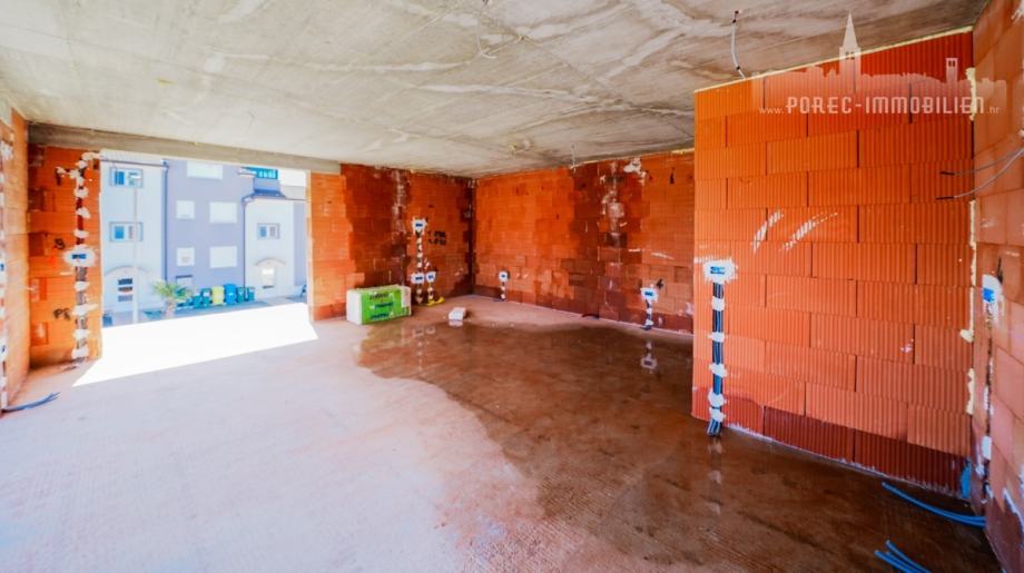 Stan se sastoji od prostranog open-space prostora s velikim staklenim stijenama u kojem se nalazi dnevni boravak, blagovaonica i kuhinja, hodnik, tri komforne spavaće sobe, kupaonica, dodatni WC i spremište.