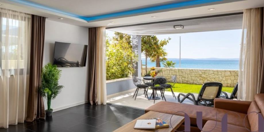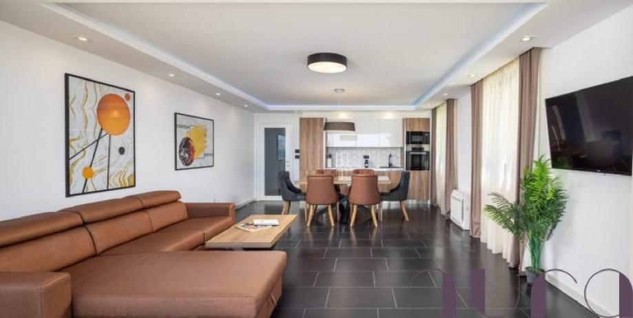 A beautiful, luxurious and modern apartment is for rent located in a new building, first row by the sea in Podstrana. The apartment is 90m2 and exudes freshness and luxury, and what captivates the most is the open view of the sea and the islands. It is a “smart house”, underfloor heating, electronic roller shutters… the right to use the gym, sauna, and restaurant within the facility. The right to use two garage parking spaces! For rent until summer 2026. The monthly rent is €1,800. All additional information on request!