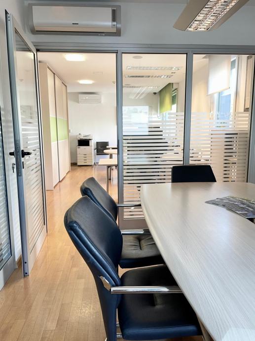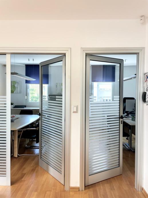 Staklene pregrade osiguravaju dojam otvorenosti i prozračnosti. Ured je spreman za useljenje bez dodatnih ulaganja.
