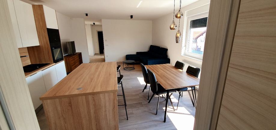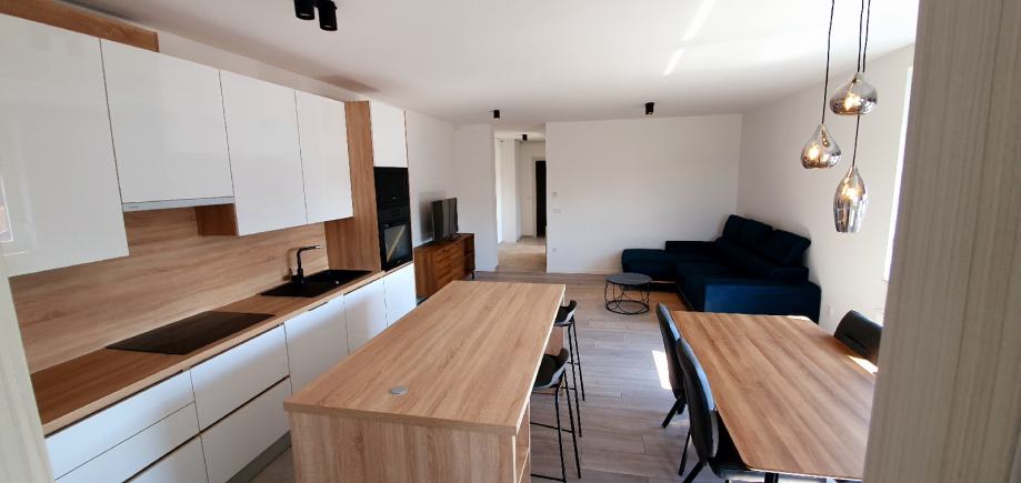 Prekrasno i moderno uredjen trosoban stan , na 1 katu novoizgradjene zgrade, potpuno opremljen vrhunskim namjestajem po mjeri, svim aparatima, sudjem, brzi internet, ...stan se iznajmljuje na min 6 mjeseci i u cijenu najma ukljuceno je čišćenje stana 2 puta mjesecno. Stan se nalazi u blizini svih sadržaja , autobusna stanica je ispred zgrade, kafic, frizerski salon , ducan , skola, ...stan ima vlastito parkirno mjesto i parking je pod rampom.