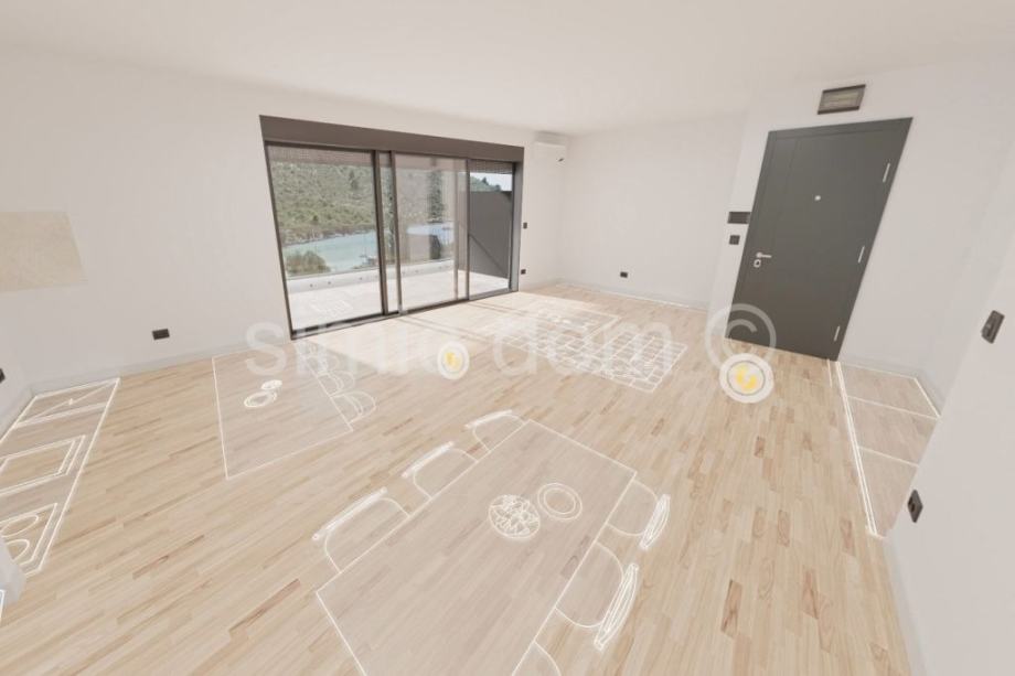 Na prodaju su apartmani u luksuznoj novogradnji svega par koraka od mora u mirnom naselju blizu Rogoznice. Zgradu gradi renomirana firma s velikim iskustvom u novogradnjama, stoga su kupci oslobođeni poreza na promet nekretninama. Apartman S1 smješten je u prizemlju zgrade te ima neto korisnu površinu od 90,97 m2, odnosno korisne podne površine 109,75 m2. Sastoji se od tri spavaće sobe, dvije kupaonice, prostranog dnevnog dijela s kuhinjom i blagovaonicom, iz kojeg se izlazi na predivnu terasu s pogledom na more. Apartmanu pripada i vanjsko parkirno mjesto uključeno u cijenu. Svaki apartman opremljen je s pažnjom i prema visokim standardima gradnje. U pogledu opreme, odabrani su renomirani proizvođači koji jamče dugotrajnost, funkcionalnost i estetiku. Ugrađuje se aluminijska vanjska stolarija Schüco, dok je fasada izvedena s toplinskom izolacijom od vune. Grijanje i hlađenje osigurano je DAIKIN klimatizacijskim uređajima, a u kupaonicama je predviđeno podno grijanje. U ovoj fazi izgradnje, prema želji kupca, moguće je uvesti podno grijanje u cijelom stanu. Podovi su obloženi hrastovim parketom i keramikom više klase, a kupaonska oprema uključuje sanitarije provjerenih proizvođača Hans Grohe i Geberit. Udaljenost do mora i marine iznosi svega 30 metara, a prva uređena plaža udaljena je svega 80m što čini ovu nekretninu izrazito atraktivnom. Očekivano useljenje je ljeto 2027. godine.
