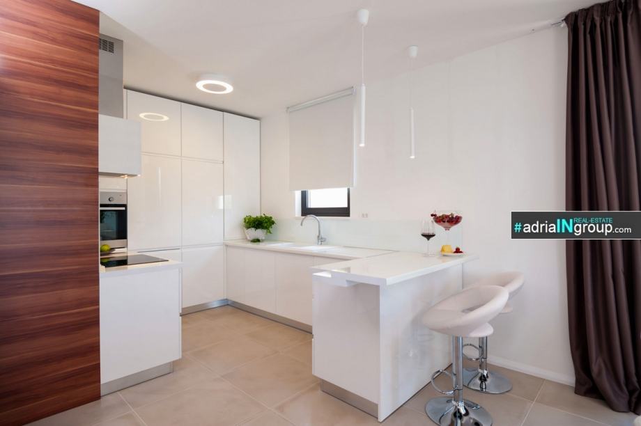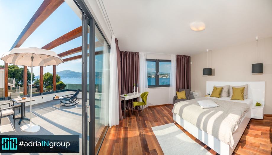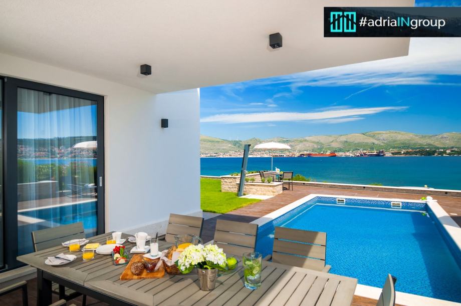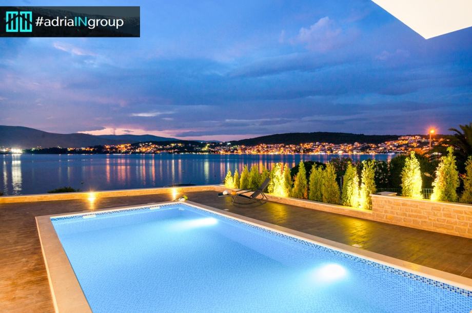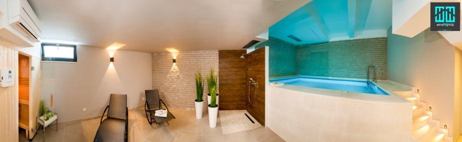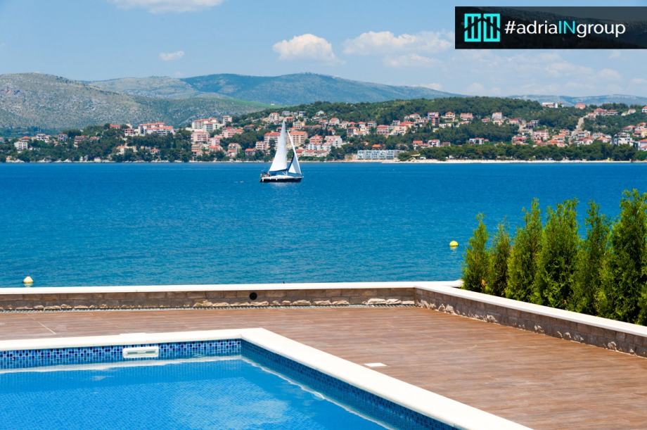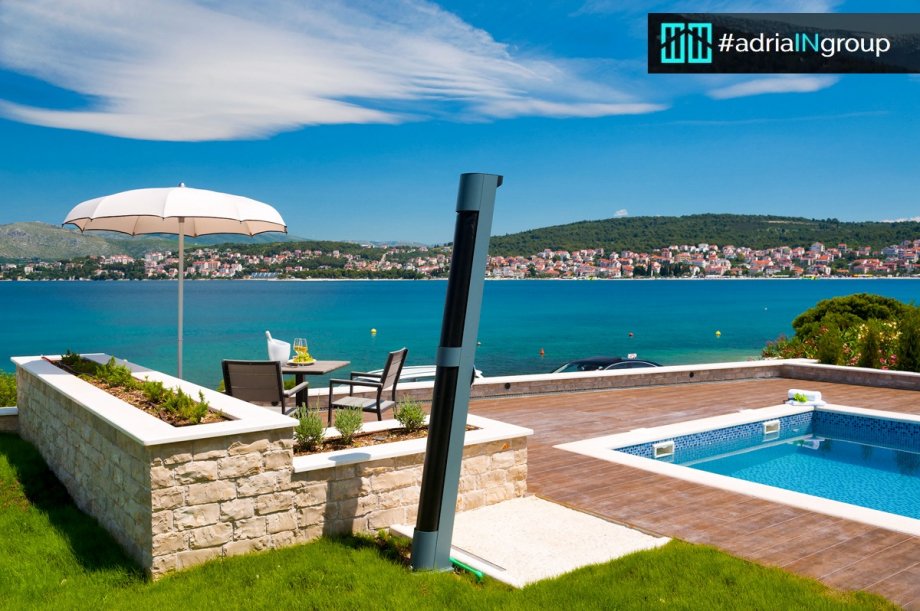 Discover the fantastic refreshing relaxation of one of our Superior Villas. This stylishly furnished holiday home is located on the island Ciovo, next to a beautiful gravel beach. It is fully equipped and offers you the best conditions for a relaxing holiday. The basement of the house has a wellness zone with an indoor pool, sauna, fitness room, and an activity room with pool billiards. The indoor pool is equipped with a counter-current swimming system and heating. The outdoor pool stands out for its remarkable position. Enjoy the fact that you are directly next to the sea. Relax and leave the everyday routine behind you. Enjoy the summer atmosphere on this beautiful small island with turquoise blue and crystal clear sea, which has recently become a popular holiday destination. The island of Ciovo is connected with Trogir and the mainland by a bridge.