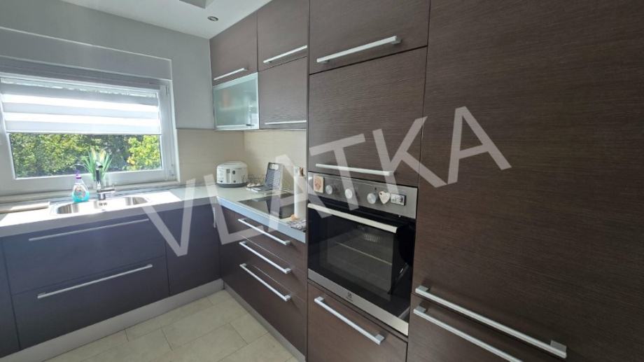 3-soban stan (85m2) s odvojenim ulazom: ulazni hodnik, 2 spavaće sobe, 1 kupaonica, dnevni boravak, kuhinja, blagavaonica, ravan vrt s predivnim pogledom.