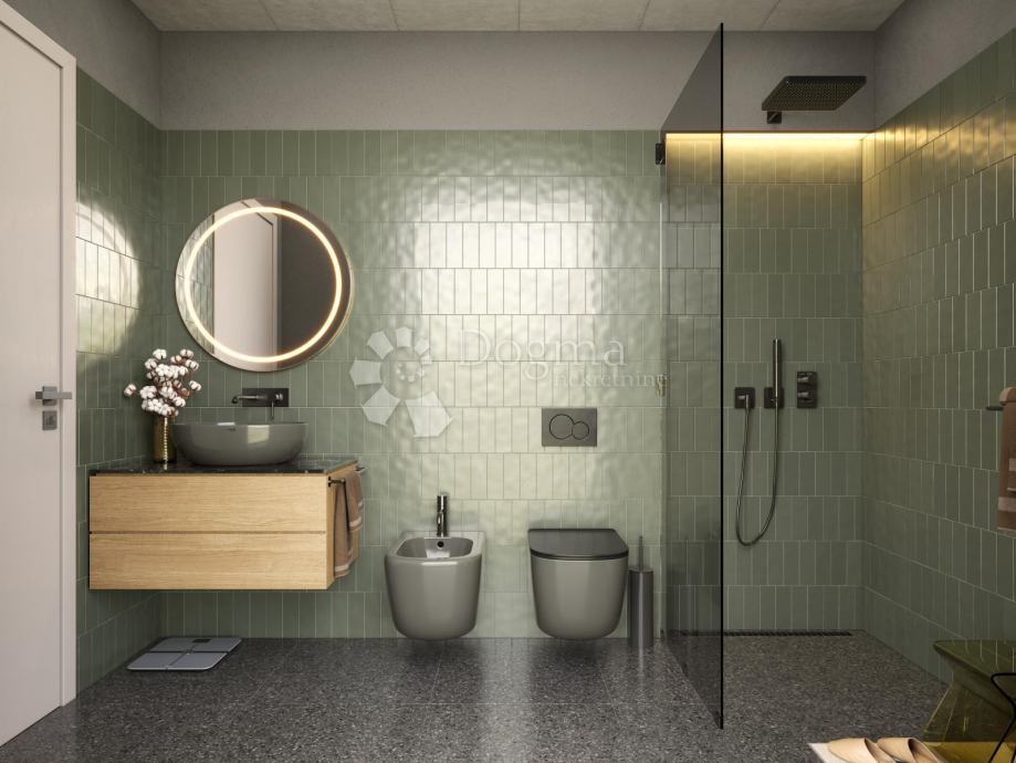 Kuća u izgradnji s bazenom u okolici Poreča je prostrana i moderna nekretnina s ukupnom netto površinom od 200 četvornih metara. Središnji atraktivni dio kuće je grijani bazen površine 56 četvornih metara, koji će vam omogućiti uživanje u vodi tijekom cijele godine. Bazen će biti opremljen suvremenim sustavima filtracije i grijanja kako bi se osigurala udobnost i čistoća vode.