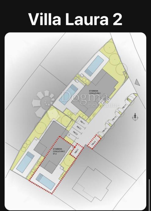 Villa je građena u DUPLEX STILU GRADNJE, vertikalno podljeljena vila u dvije zasebne jedinice.