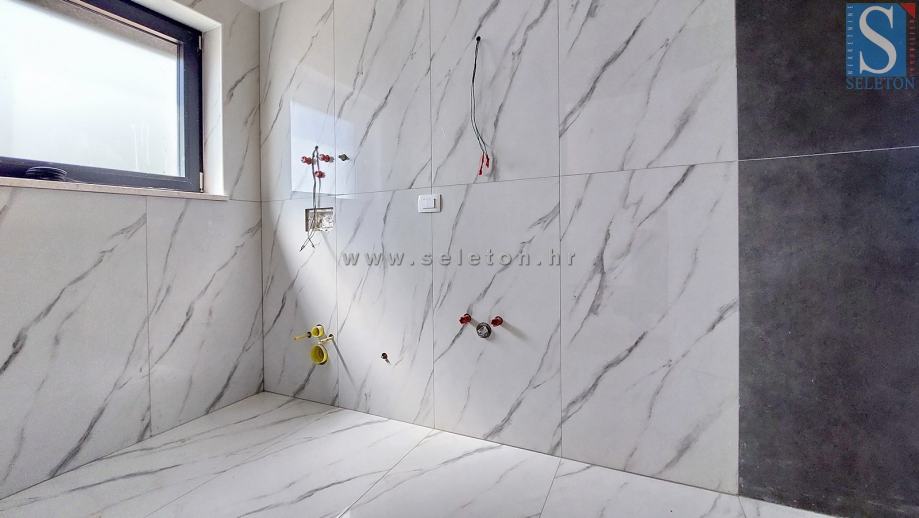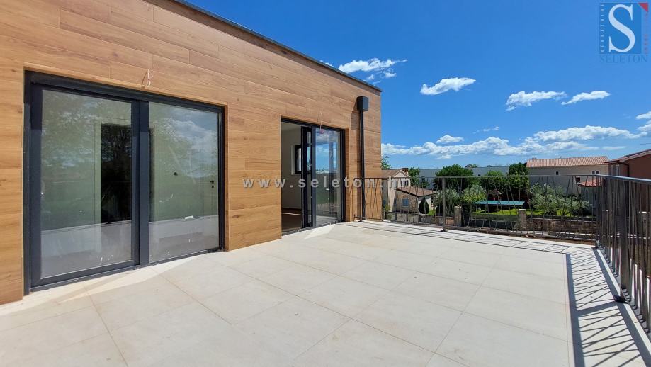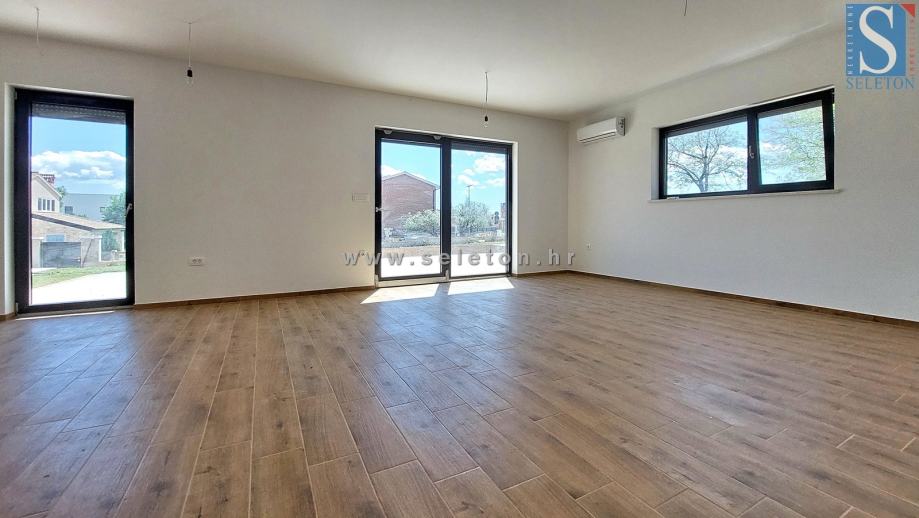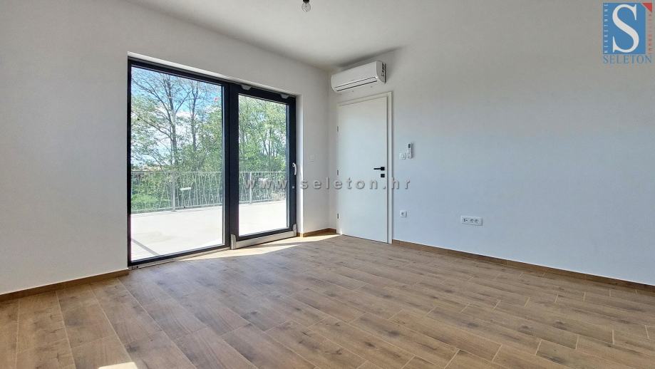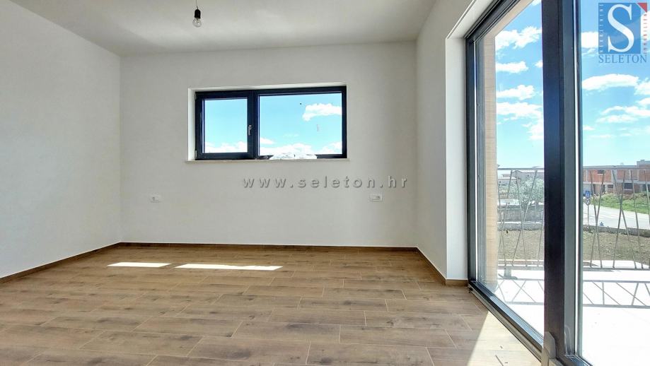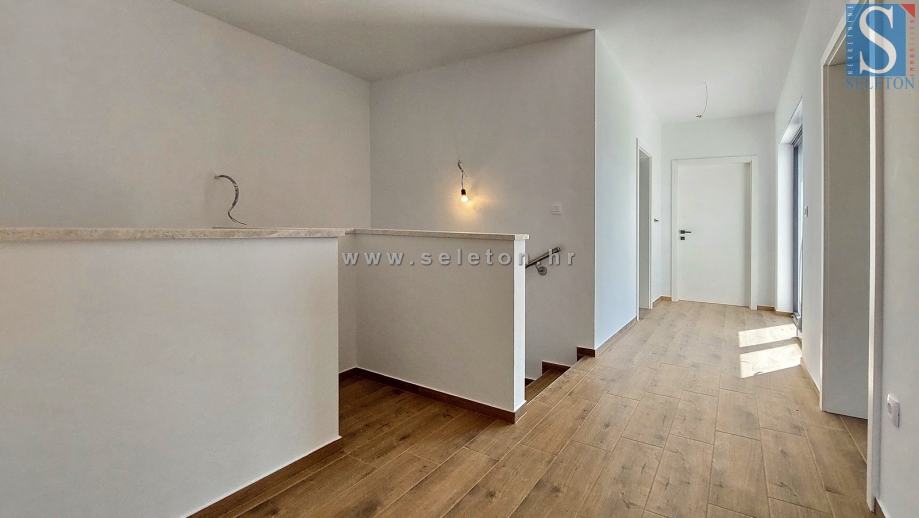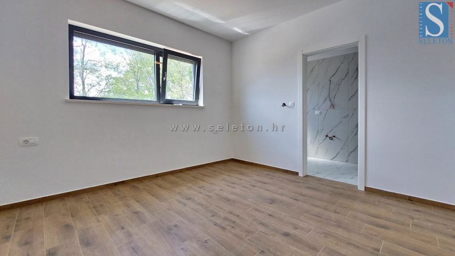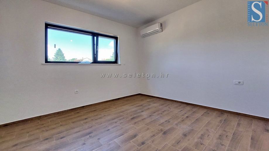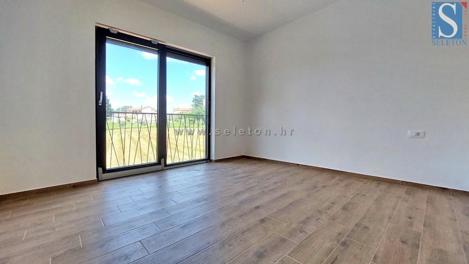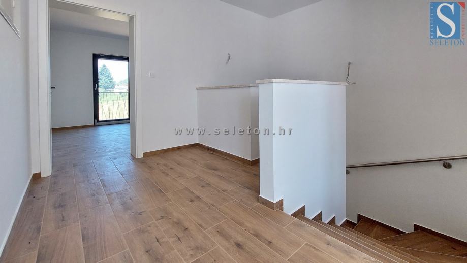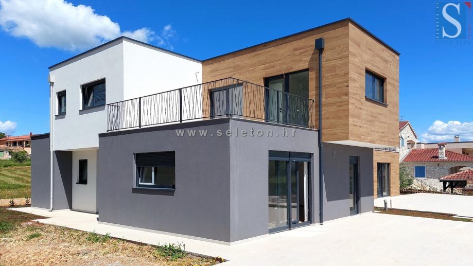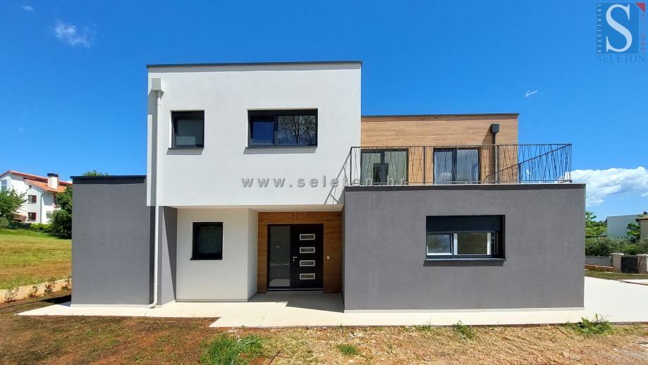 Prodaje se moderna dvojna kuća površine 136 m², sastoji se od dnevnog boravka, kuhinje, blagovaonice, terase, spavaće sobe, kupatila, spremišta, hodnika i ostave u prizemlju te hodnika, 3 spavaće sobe, 2 kupatila i terase na katu kuće. Kuća ima podno grijanje na struju, klima uređaj, zemljište ima površinu od 670 m² na kojem se još nalaze 2 parkirna mjesta i bazen. Kuća je udaljena cca 8 km od Poreča i 9 km od mora.