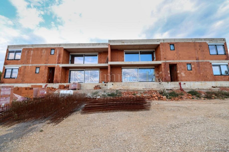 Na prodaju je moderna dvojna kuća smještena na mirnoj lokaciji u okolici Krka, idealna za one koji traže suvremen, luksuzan dom u novogradnji. Ova atraktivna nekretnina prostire se na 157 m2, raspoređenih na dvije etaže, i nudi savršenu kombinaciju udobnosti, stila i funkcionalnosti, uz blizinu svih potrebnih sadržaja.