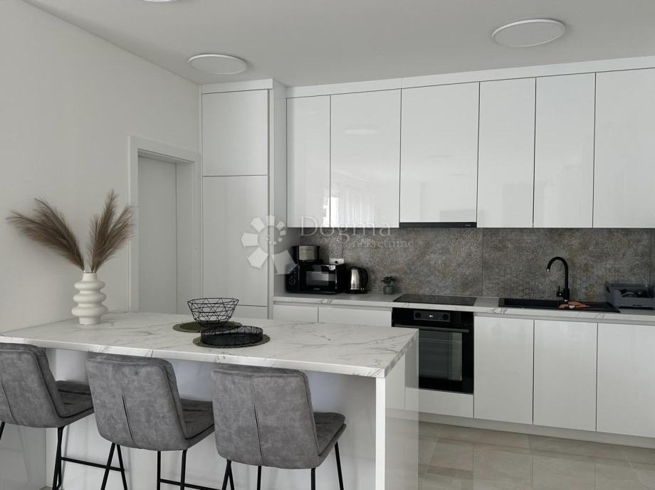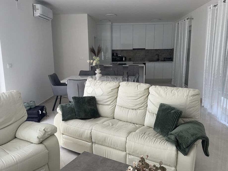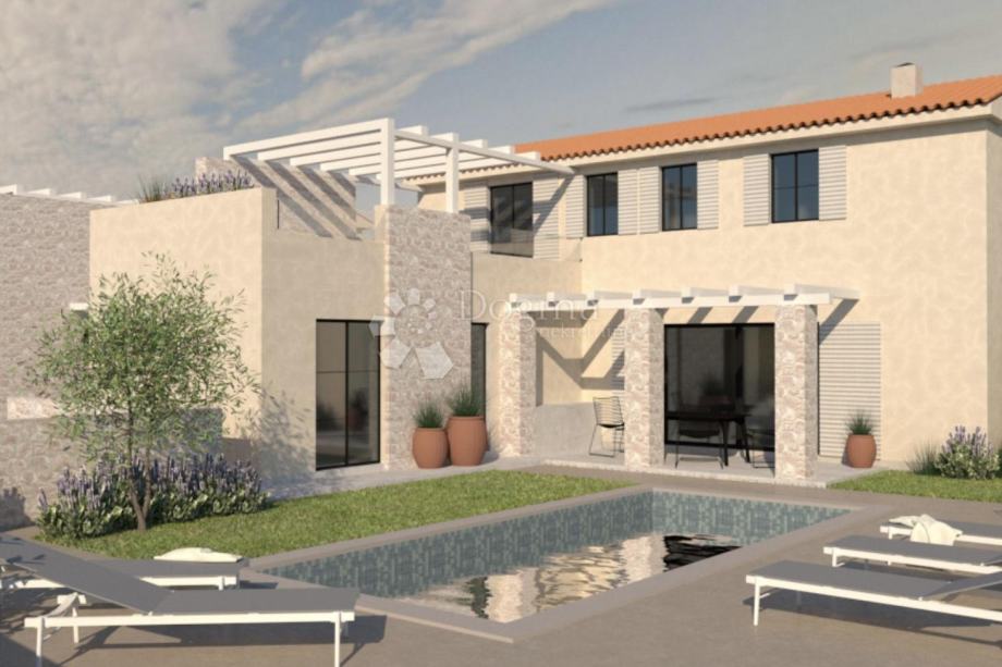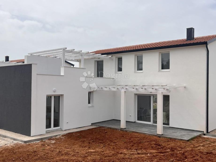 This modern semi-detached house is located in an attractive part of Umag, surrounded by stunning landscapes and close to the sea. The right side of the house is unfurnished, offering the perfect opportunity to personalize the space according to your own preferences and needs. It is ideal for those seeking a peaceful retreat in the unique Istrian setting, with the option to create a home tailored to their taste.
