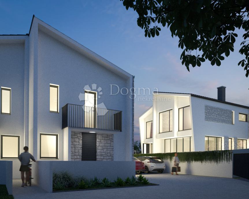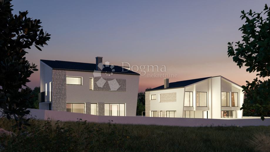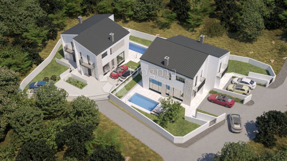 Na odličnoj lokaciji koja nudi mir i privatnost, prodaje se luksuzna dvojna vila u izgradnji koja će se graditi po konceptu moderne istarske arhitekture.