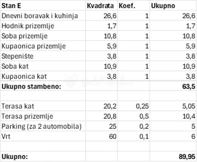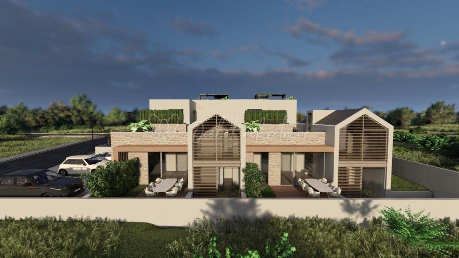 Uz kuću dolaze dva parkirna mjesta i vrt površine 60 m², koji omogućuju dodatni prostor za uređivanje prema vlastitim željama. Sveukupno, ovo je dom koji odiše posebnošću i elegancijom, savršeno uklopljen u mediteranski pejzaž, s naglaskom na udobnost, funkcionalnost i moderan stil života.